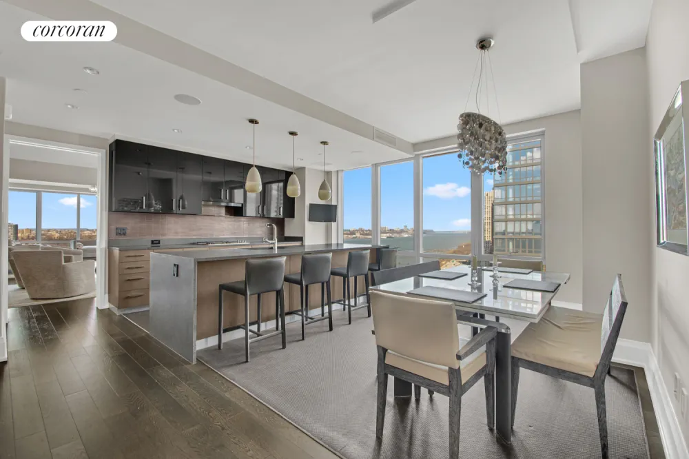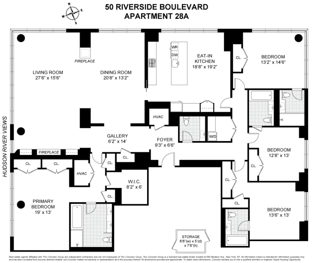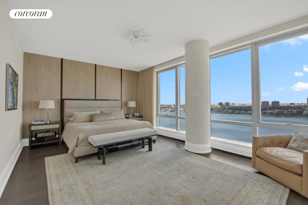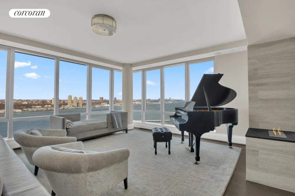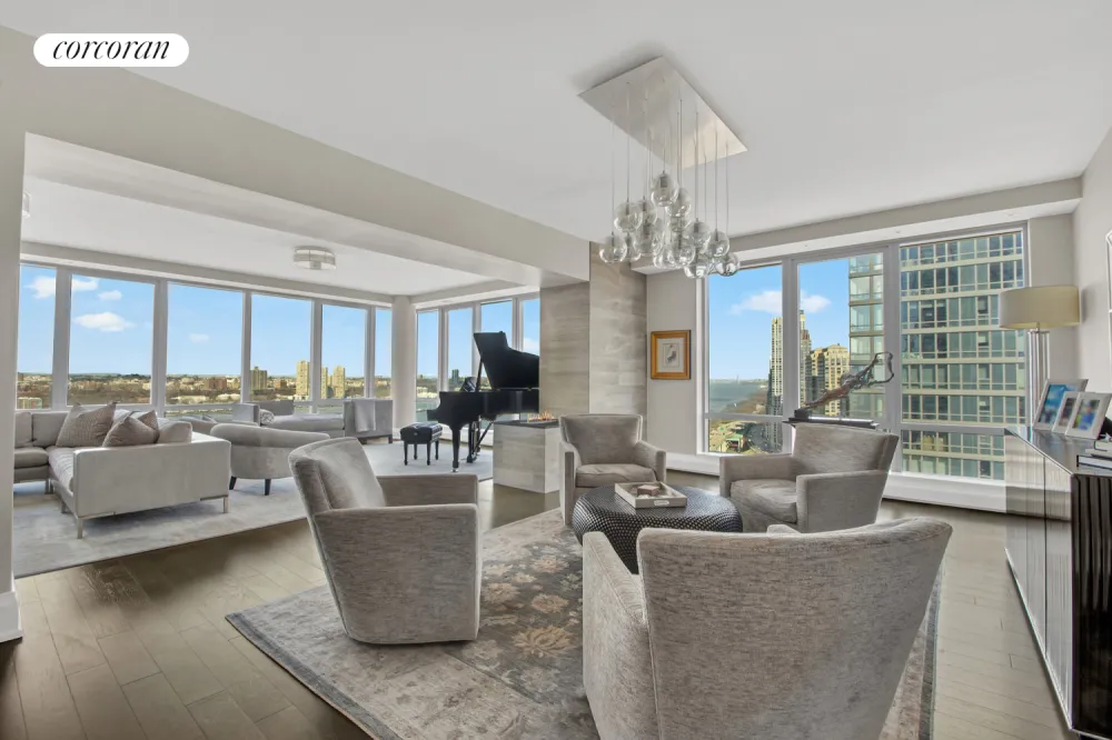 Welcome to a truly exceptional residence at 50 Riverside Boulevard. Unit 28A is a splendid half-floor condo measuring 3190 square feet. It offers an extraordinary living experience with 7 spacious rooms, including four bedrooms all with en-suite bathrooms plus a gracious powder room. Step into a haven of elegance with soaring 9-foot high ceilings, immaculate hardwood floors, and panoramic views of the bridges, river, and skyline that will take your breath away. The enormous corner living room features a fireplace and room for your grand piano. Cooking enthusiasts will delight in the chef's kitchen, featuring a casual dining area, a central island w/seating, and a pantry. Perfectly designed for culinary adventures, this space is complemented by a formal dining room, optimal for hosting gatherings. The lavish primary suite is river front with 5 closets (1is a walk-in), a bath featuring dual sinks, an oversized tub, and a stall shower, creating a serene retreat. You'll find abundant storage throughout including a double-size storage cage. And, convenience meets luxury with an in-unit laundry room equipped with a Whirlpool W/D. The unit's multiple exposure to the north, east, and west ensures excellent light throughout the day. The building itself is a treasure trove of premium amenities, including full-time doorman and concierge services for your peace of mind. Enjoy La Palestra Athletic Club and Spa plus a 24-hour fitness center, screening room and entertainment rooms with a catering kitchen, rooftop outdoor grill, billards, game room, and playroom by Kidville. Fitness enthusiasts will appreciate the pool and climbing wall, while sports enthusiasts will enjoy bowling, full-court basketball, and a golf simulator. Located in the vibrant Lincoln Square neighborhood, you're just a stone's throw away from iconic attractions such as Central Park and Lincoln Center. With convenient transportation options including a weekday shuttle to get you to/from work and play. Benefit from 20 year (421a) tax abatement with 10 years remaining.
