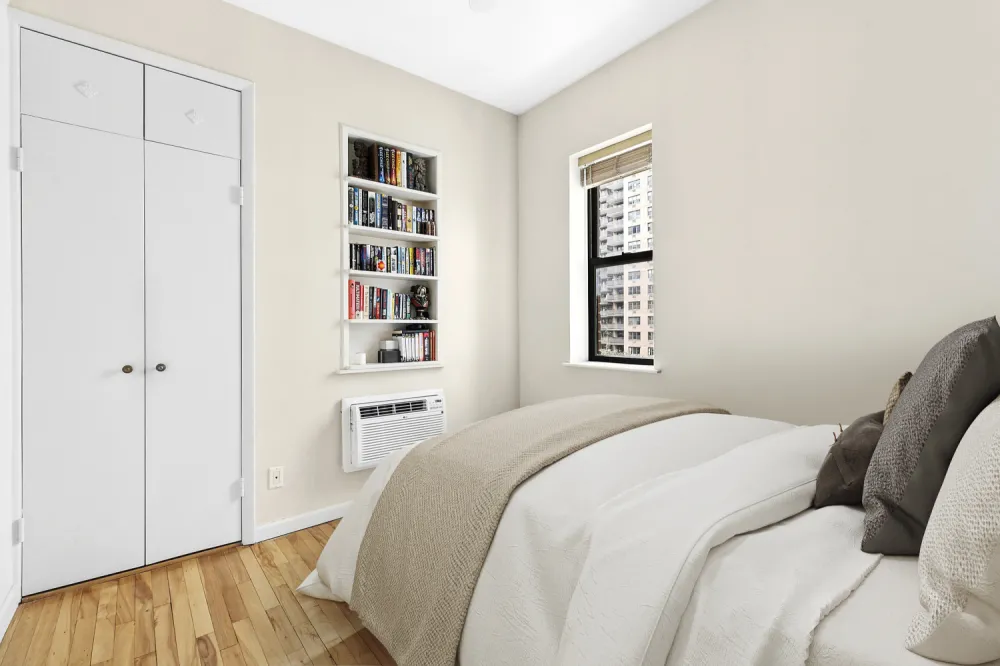 This flexible co-op permits co-purchasing, pied-à-terre use, guarantors, and financing up to 80 percent. Pets are welcome with board approval.