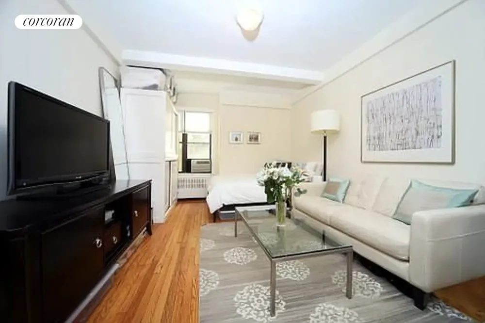 SPONSOR SALE! NO BOARD APPROVAL! Located off Central Park in a coveted, full service prewar building, this spacious studio features hardwood floors, soaring 9 foot beamed ceilings, kitchen, tile bathroom, ample closets, and charming prewar details throughout. The flexible space can accommodate several... See more
