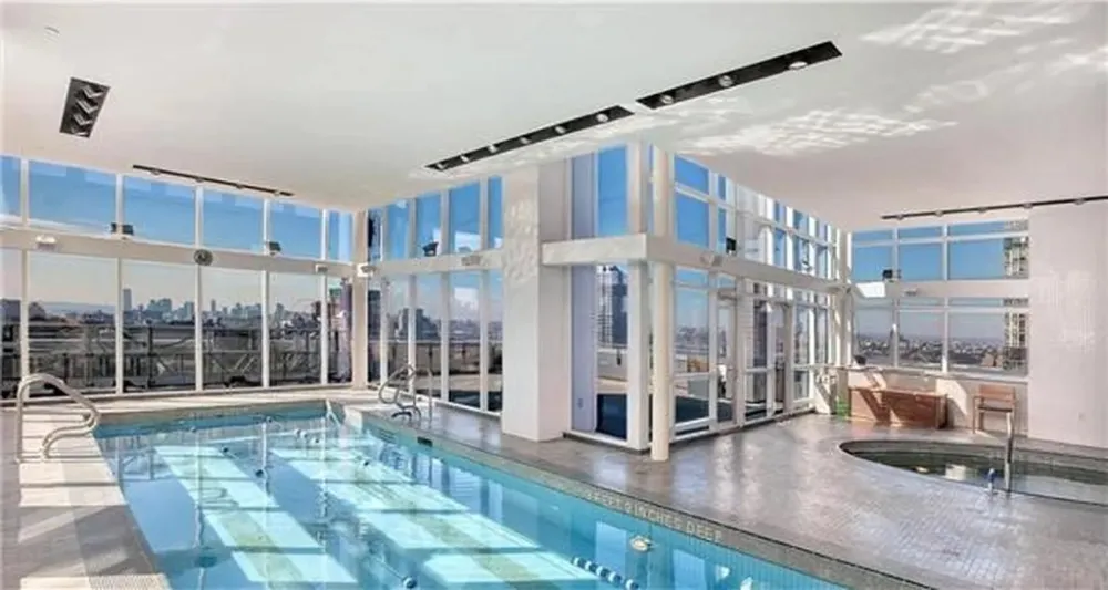 LUXURY STUDIO/Junior One Bdrm 10? 10? separate bedroom with Custom Sliding Glass Doors. Large Custom Closets and Blinds. Located on a high floor facing east with views of Empire State Building. Featuring Beautiful Hardwood Floors, High Ceilings, Designer Kitchen and Bath, and Bright Full Wall of Floor-to-Ceiling Windows. The building itself has a world-class Health Club, Pool, Hot Tub, Sauna, Garage, 24 hour Hotel Doorman/Concierge services, Huge Laundry Room, Outdoor Entertainment Terrace, Multiple Sundecks, Conference Room and Screening Room. A very nice space.