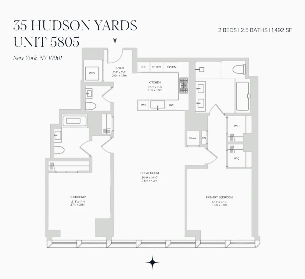 EXPERIENCE ELEVATED LIVING IN THIS STUNNING HIGH-FLOOR TWO-BEDROOM RESIDENCE AT 35 HUDSON YARDS Welcome to Residence 5805 a spectacular two-bedroom, two-and-a-half-bathroom home soaring high above the city, offering sweeping unobstructed southern views of Downtown Manhattan and the Hudson River through... See more