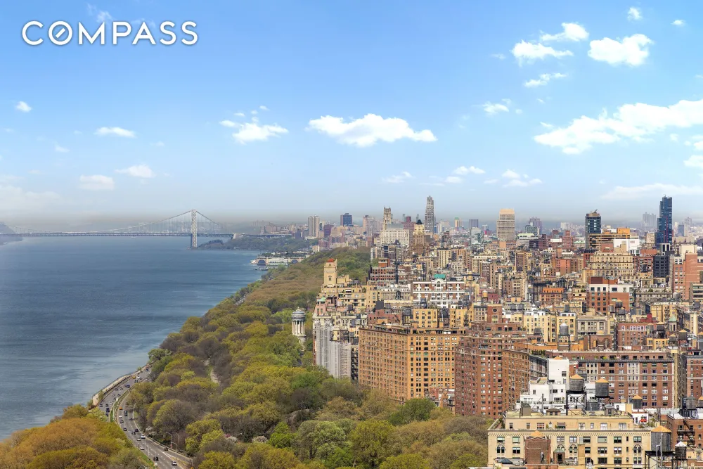 Extraordinary river and city views. Sun-flooded. High ceilings, exceptional open and airy floor plan. This home has it all. Perched on the 39th floor of one of Manhattan’s most prestigious condominiums, this expansive 2-bedroom, 2-bathroom corner home spans approximately 1,429 square feet and showcases breathtaking panoramic views of the city skyline, the Hudson River, George Washington Bridge, and both Riverside and Central Park.