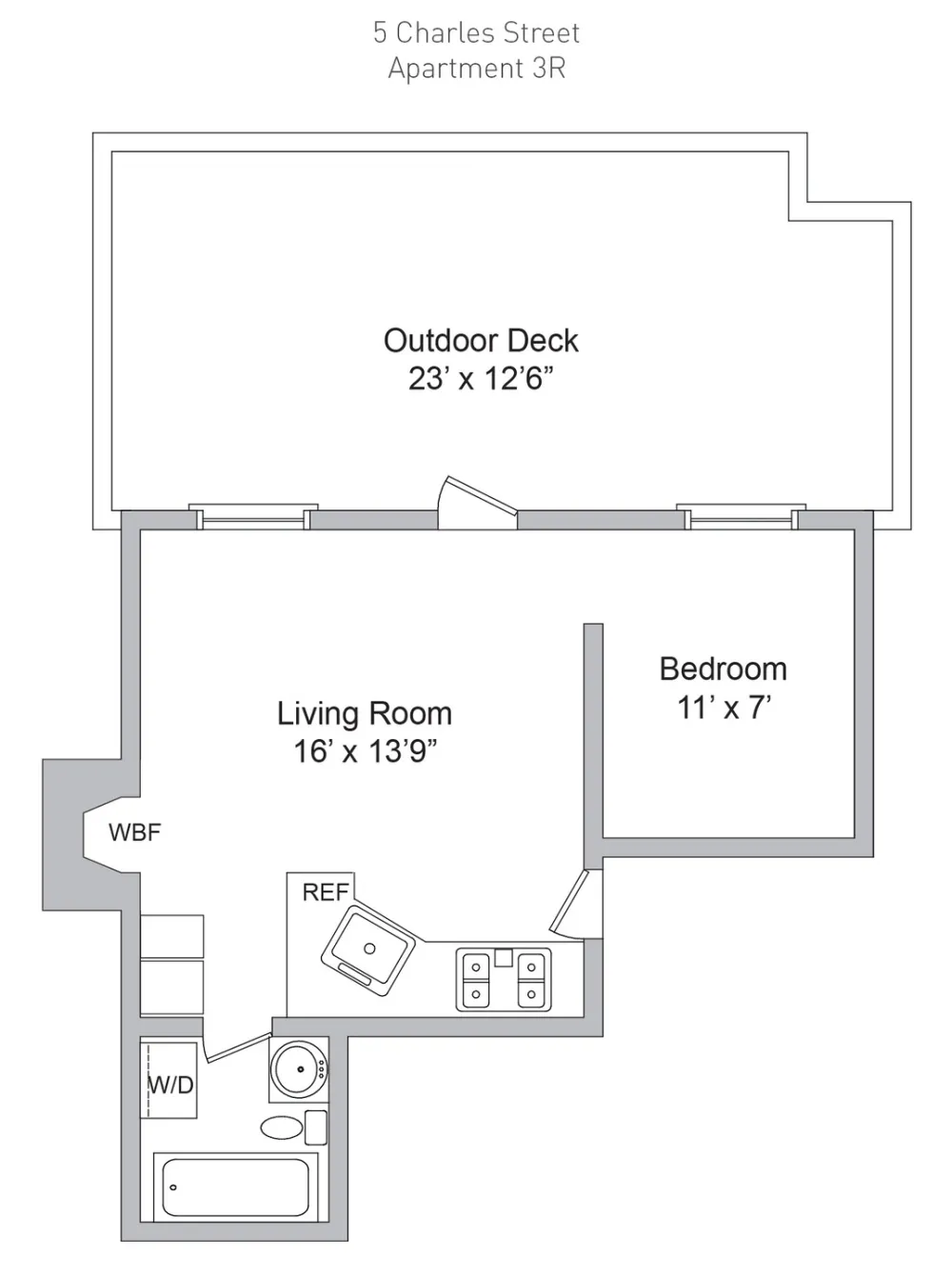 OFFER ACCEPTED----DOWNTOWN OASIS---A Charles Street Retreat--With Massive Private Outdoor Space-**. The quintessential West Village retreat. This is one of those rare homes that has everything you would desire for that perfect village residence: A real wood burning fireplace, WASHER/DRYER stacked unit, renovated bathroom, and an unusually large 22 foot outdoor furnished patio/deck elevated looking over the gorgeous townhouse gardens between Charles Street and Perry Street.  Beautiful exposed brick graces the western wall, oversized windows bring in exceptional light to this junior 1 bedroom/alcove and the prewar charm exudes throughout the entire bohemian space. If you desire quiet, serenity, and peace then you will find it right here. Sorry no dogs! Meow ok with board approval. **Please note 2 of the livingroom pictures have been virtually staged**