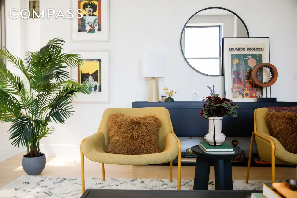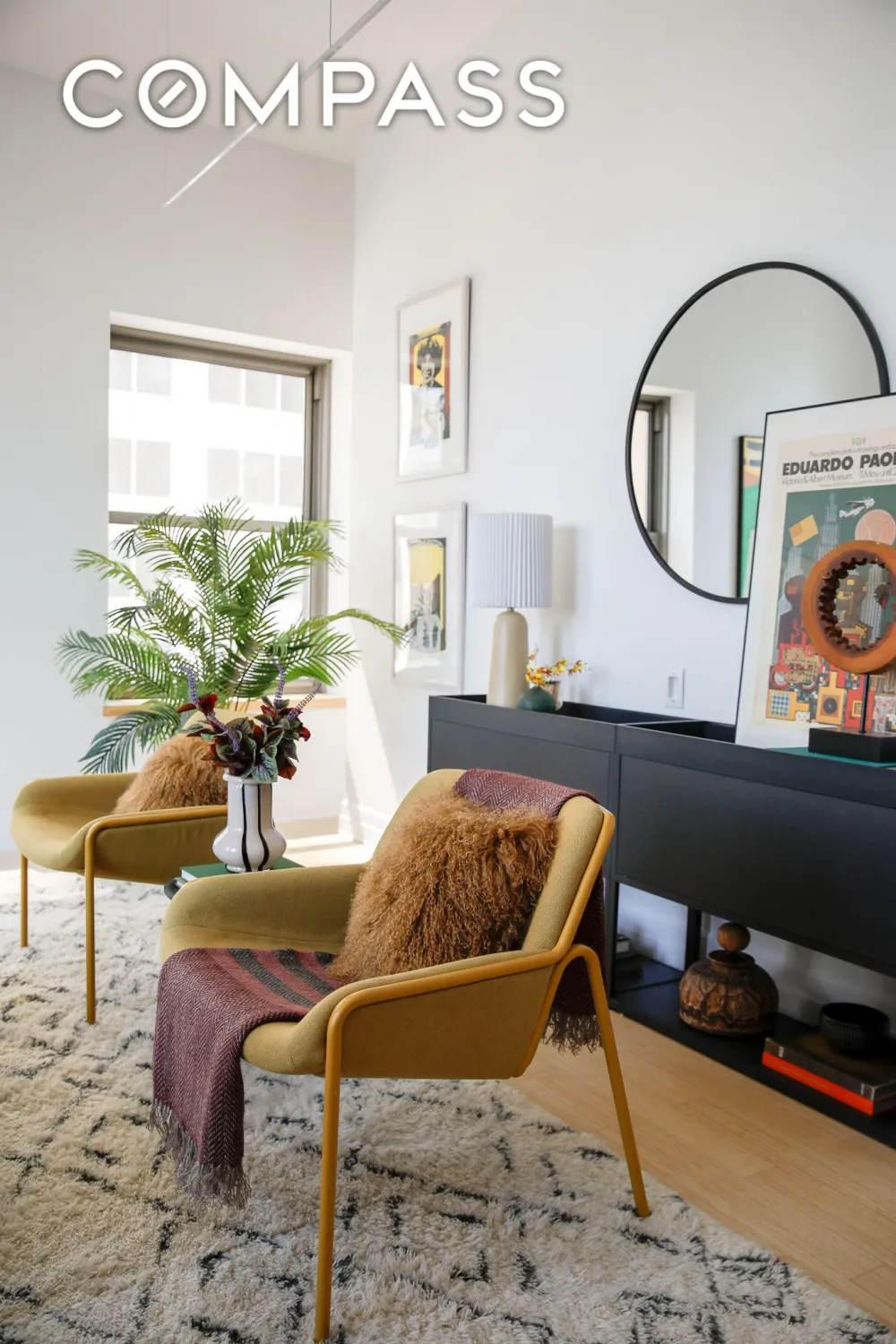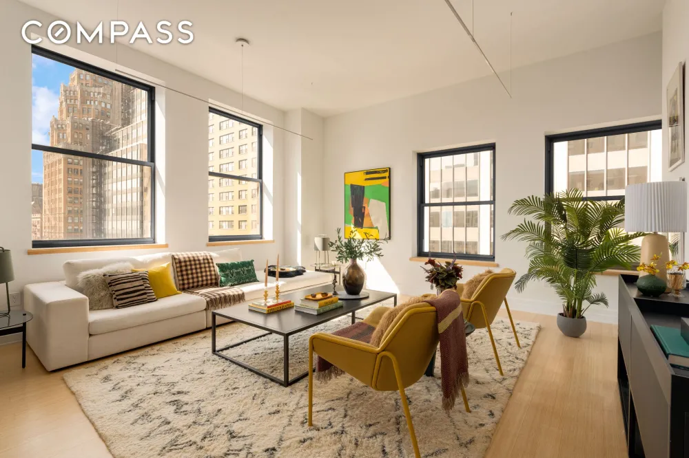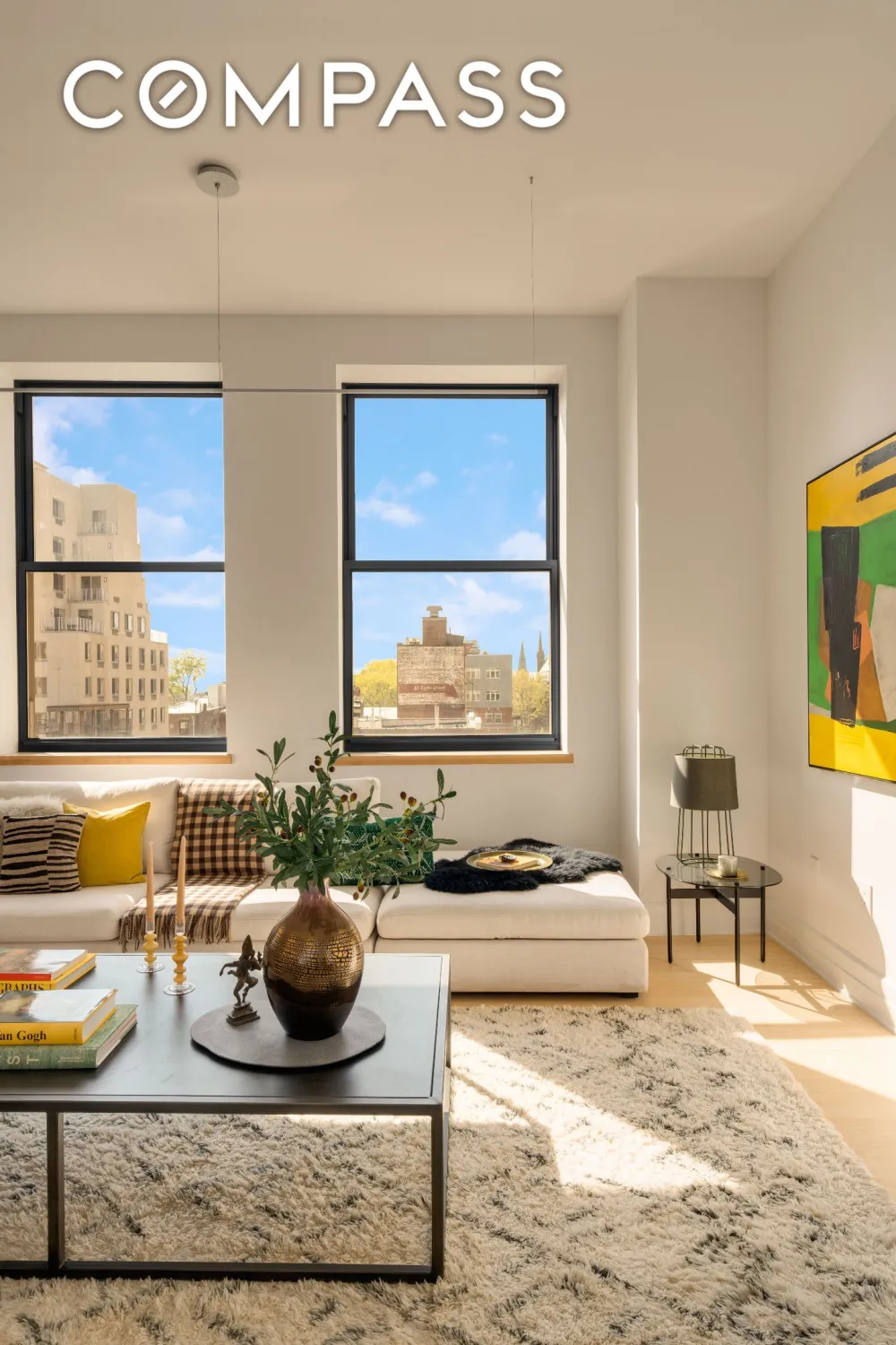 Upon entering the home, the open layout and streaming light are amplified by the nearly 11 foot ceilings and oversized windows. Enjoy gorgeous sunsets and views of charming Brooklyn Heights from a full wall of Western-facing windows in the living room.