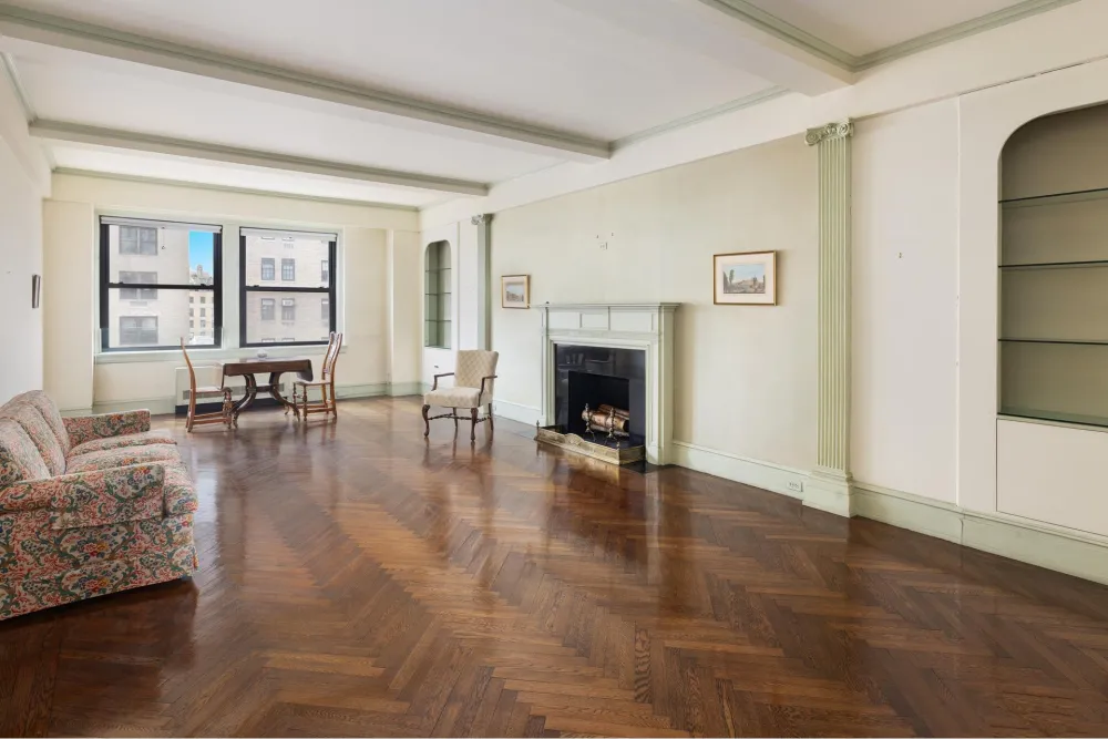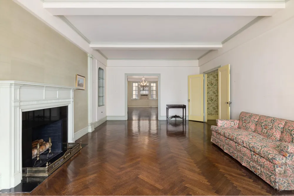 A semi-private elevator landing opens to an expansive Entry Gallery, an art collector's dream, followed by the 3015 Living Room with wood-burning fireplace and windows west over Park Avenue. The room flows seamlessly into an equally impressive Dining Room - stretching over 50 feet in total. The adjacent kitchen area is currently organized as a butler's pantry, windowed kitchen and 2 staff rooms (one with full bath), and offers endless possibilities to customize to one's needs.