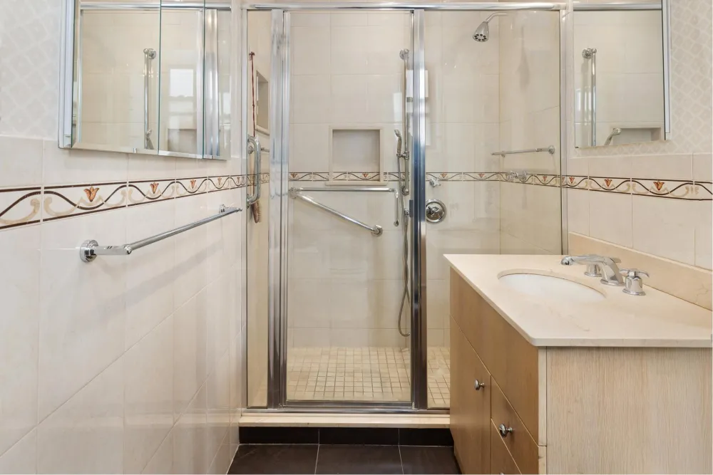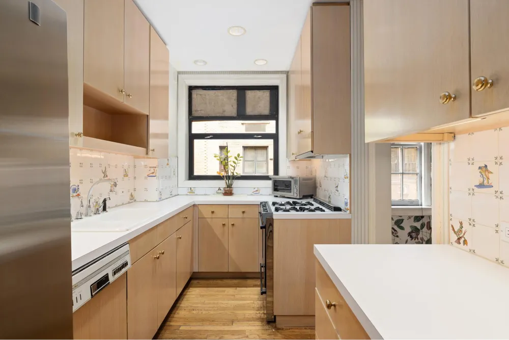 The bedroom wing features three oversized, Park Avenue-facing bedrooms. The Primary Suite offers two generous walk-in closets and a windowed en-suite bath. Two additional bedrooms each have their own walk-in closets and share a spacious, windowed bathroom. A Powder Room may be added between the two secondary bedrooms, subject to board approval.