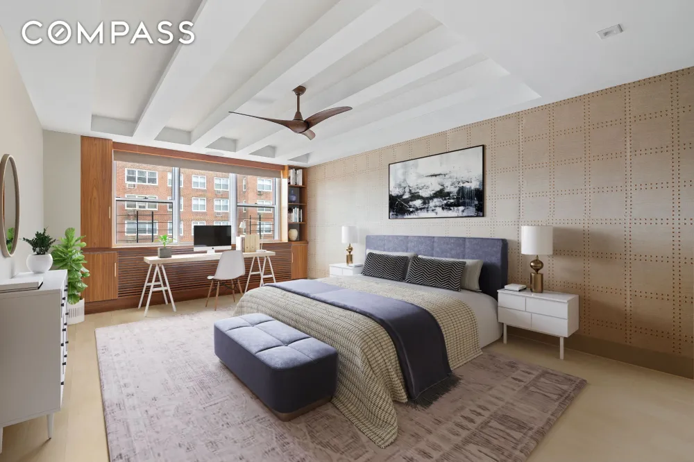 Located in the coveted Gramercy Park neighborhood, this three-bedroom, two-bathroom home offers a rare opportunity to live with exclusive Key access to Gramercy Park. Recently renovated by combining two large units, this spacious residence features white oak floors, soaring beamed ceilings with recessed lighting, and oversized CitiQuiet windows with motorized shades throughout.