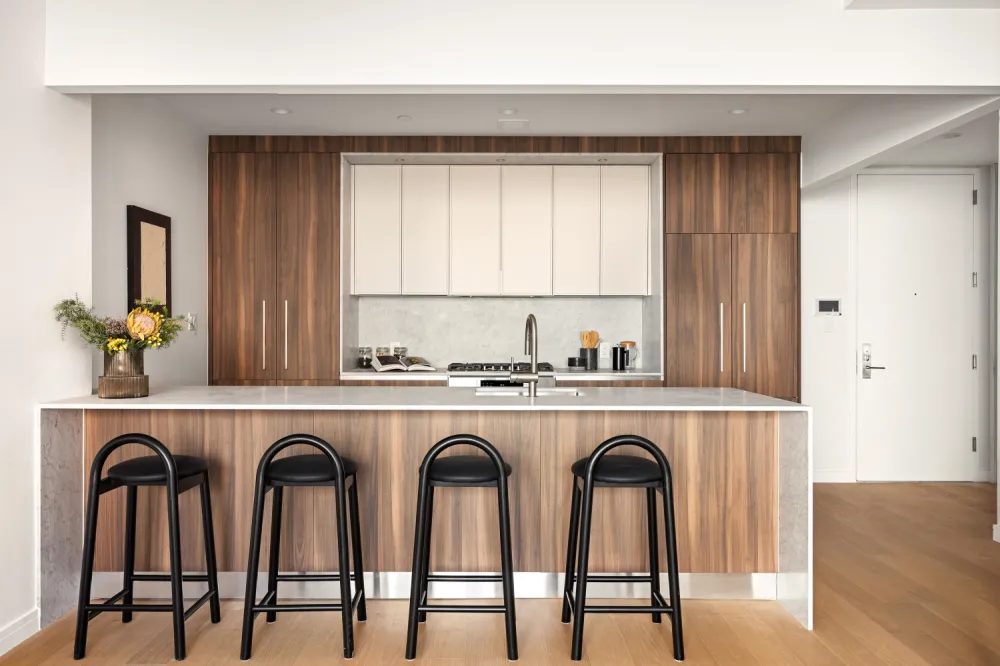 Recognized by a striking bronze-colored brick fa ade that seamlessly celebrates the brownstone vernacular of the surrounding tree-lined and historic streets, all the homes boast gracious layouts and timeless interiors. Extreme attention to every detail separates this jewel from the crowd, and it includes high ceilings, magnificent oak floors, multi-zoned heating and cooling, recessed lighting, and in-unit washers and dryers. Kitchens are outfitted with only the best, including Fisher Paykel, Miele, and Bosch appliances, including gas ranges; honed Carrara marble countertops and surrounds; and custom designed walnut and lacquer cabinetry with generous workspace. Classic Calacatta Gold marble and Travertine bathrooms are reimagined for a spa-like experience and include oversized slab tile, jewel-like brushed nickel hardware, custom-designed medicine cabinets and walnut vanities with great storage, deep soaking tubs, and glass-enclosed walk-in showers.