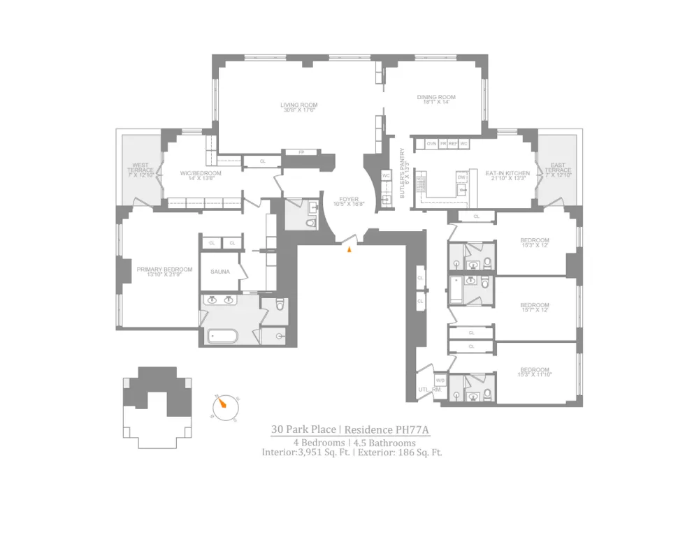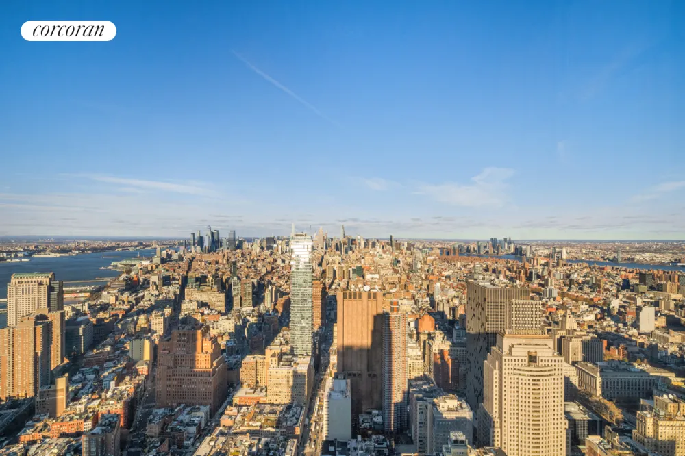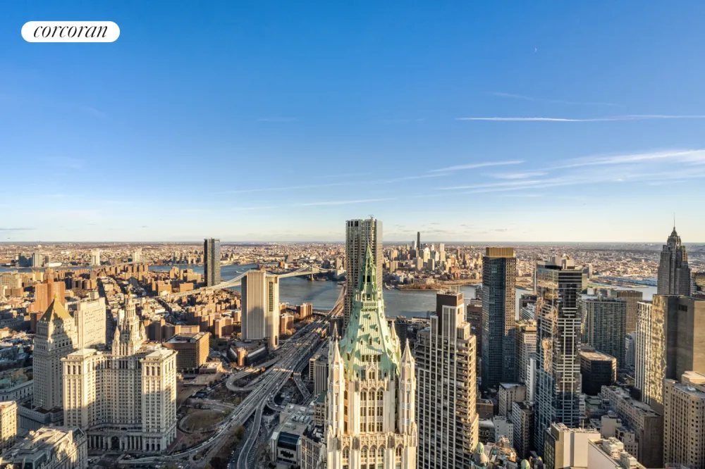 Penthouse 77A sits atop the Four Seasons Private Residences and Hotel at 30 Park Place in Tribeca. This iconic limestone-clad tower is downtown-Manhattan's highest and premier residential condominium building, and a defining silhouette of the city skyline. Spanning nearly 4,000 square feet, this spectacular penthouse offers 4 bedrooms (flex 5), 4.5 bathrooms, two terraces, and 270 degrees of uninterrupted and protected panorama over Manhattan from every room.