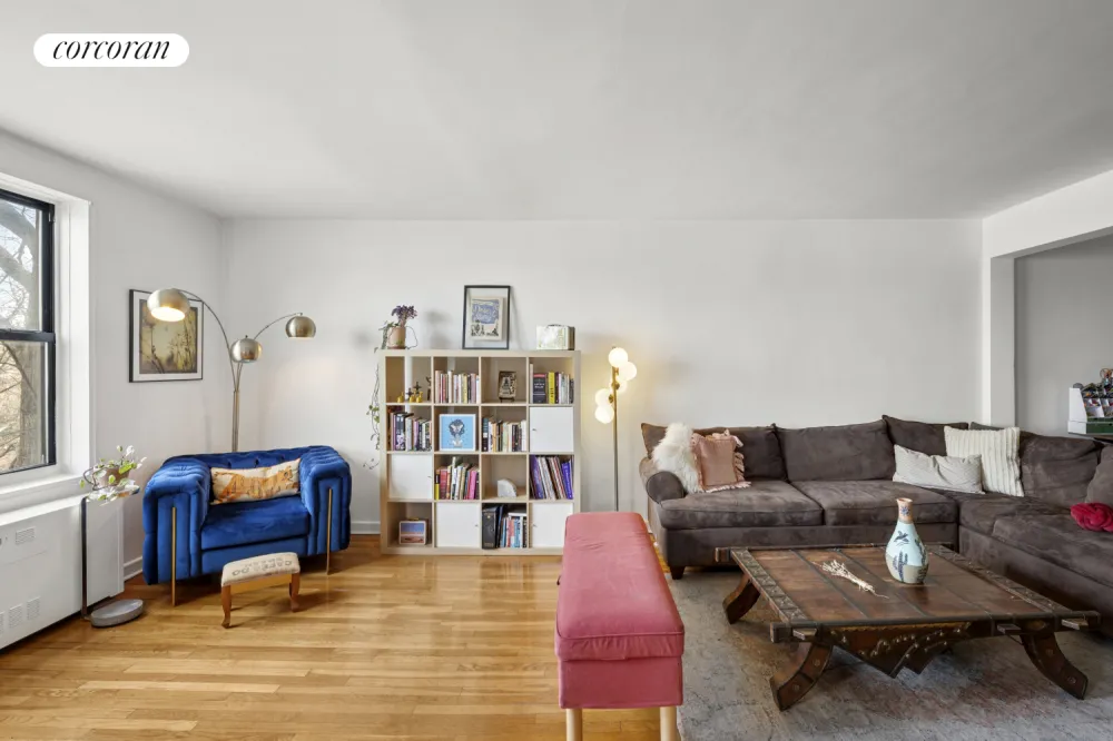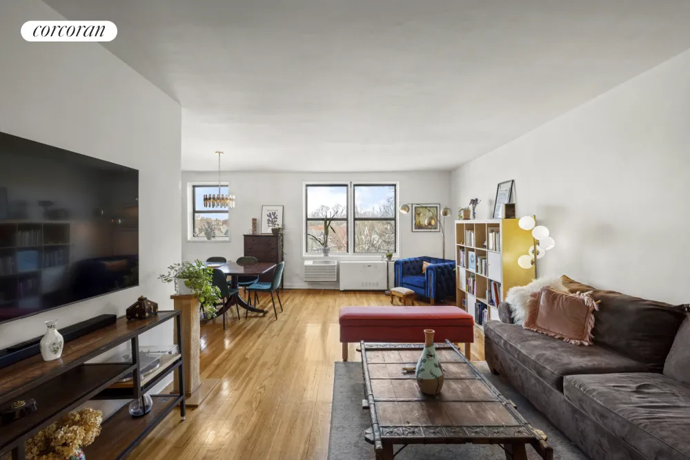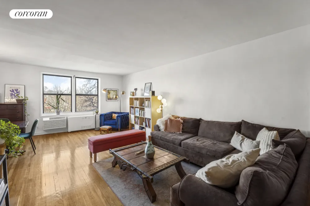 This oversized 2-bedroom, 2-bathroom home with a private terrace and serene tree-top views offers a rare blend of space, outdoor living, and versatility in the heart of Ditmas Park. Spanning approximately 1,300 square feet of interior space plus 100+ square feet of private outdoor space, this residence provides ample room to relax, entertain, or even create a third bedroom.