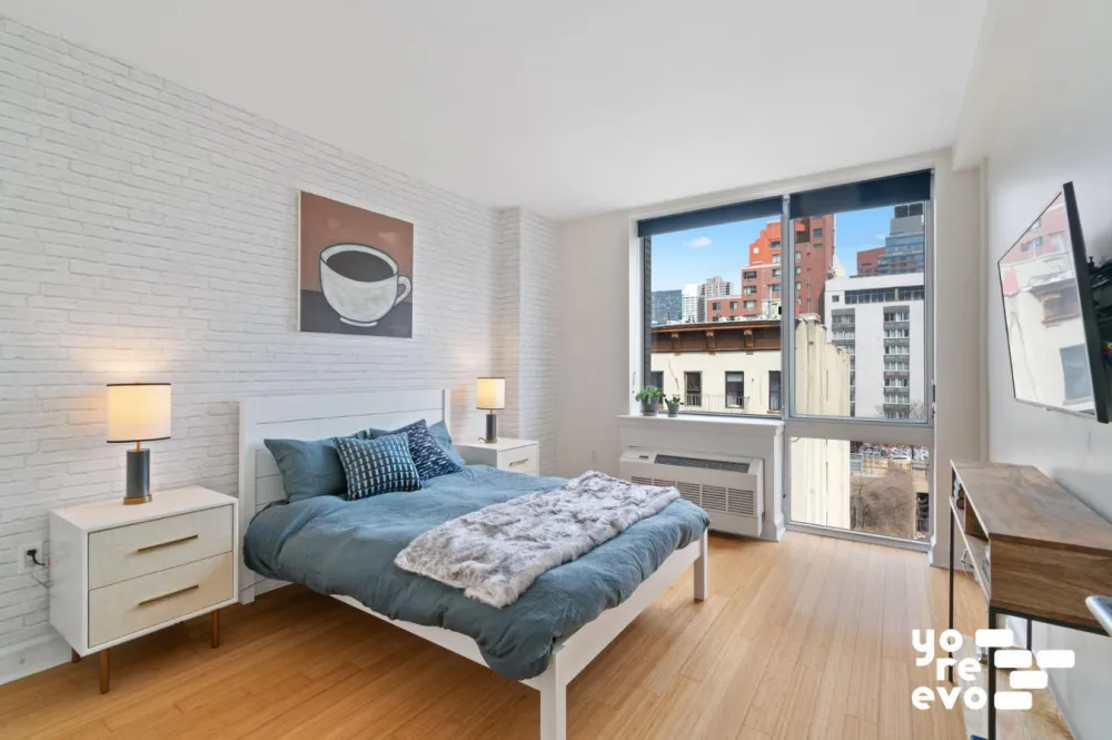 The sizable bedroom offers skyline views towards Columbus Circle, plenty of space for a king sized bed and another large, built out closet.