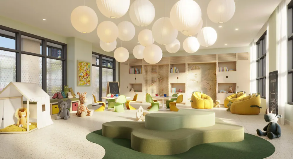 Residents at The Huron enjoy over 30,000 square feet of curated amenities and direct access to the maturing Brooklyn waterfront. Active spaces include a 50-foot indoor saltwater pool overlooking the river, a state-of-the-art fitness center with Peloton bikes, a movement/dance studio with mirrors and ballet bars and separate locker rooms with a sauna. There is a stunning resident's lounge with pool table, a formal dining room, a co-working area with pods, booths, and conference space, a game room, and a children's playroom. Outdoor spaces include a manicured waterfront promenade, an 8,000 square foot private park with recreation areas designed for kids, and two sprawling rooftops with awe-inspiring views of the iconic Manhattan skyline. Additional services include 24-hour concierge, private storage, on-site attended parking, a pet spa, a bicycle room, and a package room with cold storage.