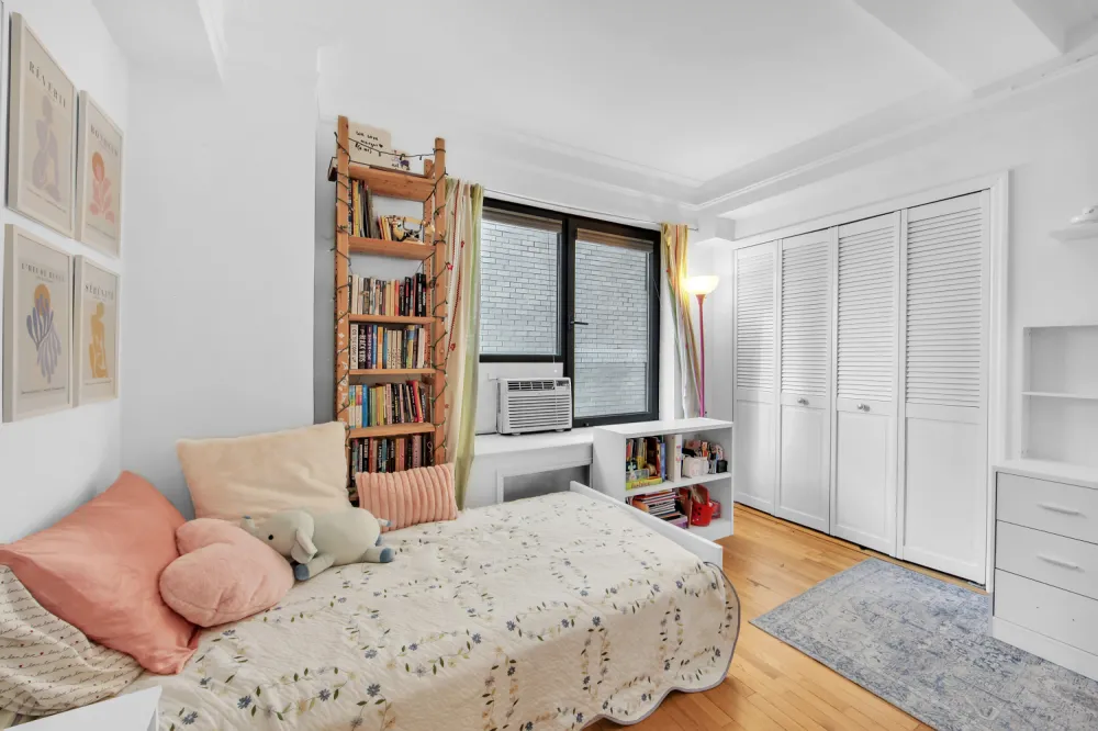 The large corner primary bedroom has both northern and eastern exposures, complete with an en-suite bathroom. The two secondary bedrooms + home office can suit various needs. Additional features include ample closet space and wash/dryer in unit.