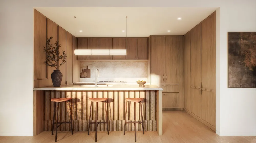 Nestled into a serene tree lined street in Boerum Hill, Brooklyn, Bergen features 105 residences by renowned architect Frida Escobedo. Driven by neighborhood context, the facade takes inspiration from the quintessential bay-window brownstones, interpreting the geometry and materiality in a contemporary manner. Composed from handmade geometric modules, the facade elegantly weaves light, shadow and air throughout each residence, revealing crafted finishes and honoring the natural environment.