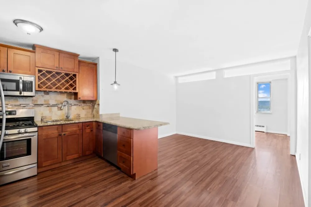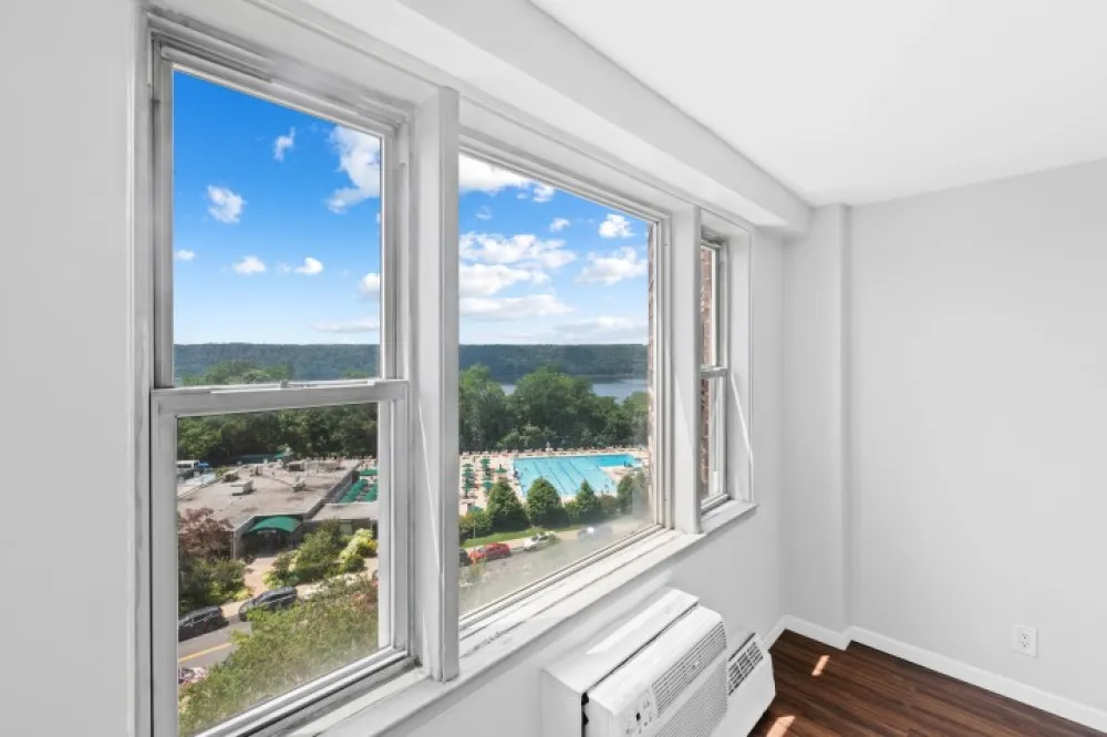 Views Views Views! River Views as far as you can see. Enter into this spacious renovated studio and you immediately see river. You can relax and call it your perfect oasis. Lets talk about the dream open Chefs kitchen. Plenty of counterspace for prep. Granite countertops and Maple cabinets. Included is a breakfast bar with seating. There are an abundance of kitchen cabinets for storage. Built-in wine rack, stainless steel appliances, dishwasher, microwave, gas stove and refrigerator. There are many large closets including a closet in your dressing area for privacy. The apartment was converted to a 1 bed providing a separate sleeping area. The bathroom is renovated. Monthly maintenance includes a full-time Doorman and Concierge, shuttle service to Metro North and shopping centers, on-site club house includes a cafe, Olympic size pool, kiddie pool, fitness center and tennis courts. Skyview offers a state of the art playground, dog run, Gazebo for private outdoor parties (additional fee) with outdoor grill and picnic tables. Indoor/outdoor parking available for an additional monthly fee. Cable and internet an additional monthly low charge of $70. Pet friendly, 1 dog allowed. EV (electric vehicle) charging stations. Close to all transportation, restaurants, schools and how wonderful to have Wave Hill as your backyard. This unique and wonderful home is not to be missed.