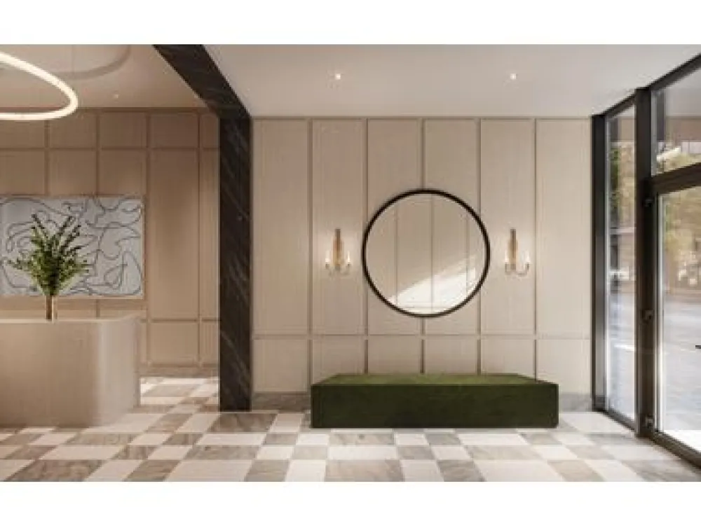 A modern reflection on timeless uptown elegance, 300 West honors the traditional architecture of Harlem with a contemporary twist. Rising fifteen stories and spanning a prime corner block in historic West Harlem, this collection of bespoke residences offers an elevated lifestyle. Complete with multiple floors of amenities including a pool and sauna, a 3,000 square foot roof deck, adjoining lounge and courtyard, and children and teen rooms, 300 West is perfectly suited for relaxation and rejuvenation. Celebrated interior designer Paris Forino brings her signature touch to the residences, balancing flow, utility, and sumptuous materials, to create spaces that project a refined calm.