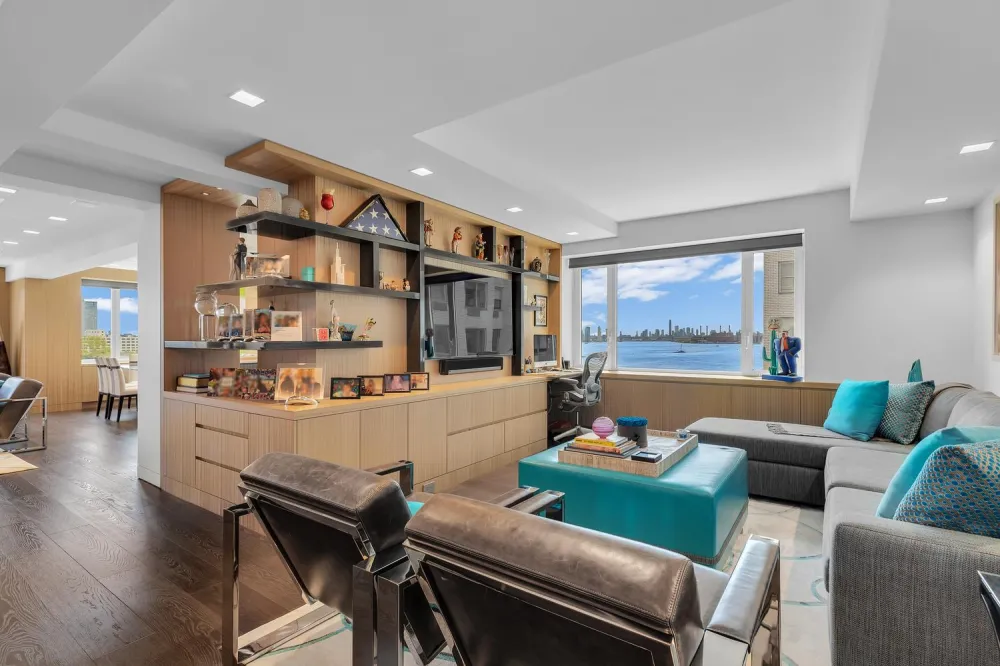 This jaw dropping designer home was meticulously renovated to create a glamorous luxury residence that is the extraordinary embodiment of sleek, innovative, and modern design. Architecturally designed, this state of the art 2-3 bedroom, 2.5 bath home will satisfy those with a discerning eye. The epitome of chic, Residence 8F asserts itself with dramatic open ambiance and modern luxury. Perfectly perched up on the 8th floor, atop of the River, one will delight in the most magnificent East and South exposures ensuring year round sunshine and extraordinary open views of the East River, the Bridge and iconic landmarks as far as the eye can see. This coveted F line enjoys enchanting front row seats to The River to enjoy the spectacular July 4 fireworks display. The residence is comprised of 2 bedrooms, a media room/den with office area, a state of the art eat-in gourmet chef's kitchen, a sprawling living room with ethanol fireplace and dining room. Prepare to be WOWED, as you enter the sophisticated hallway decorated with beautifully inlaid stone work, you are lead to the Gallery which sets the tone - you are immediately greeted with stunning panoramic view of the Bridge and River. This amazing home is grand scaled for entertaining while offering private and intimate spaces for day to day living that exceeds all expectations. Entertaining is seamless and stylish in the living room enjoying JAW DROPPING VIEWS, beautifully inlaid wood floors and an ethanol fireplace. The space seamlessly flows into the adjacent dining room that comfortably seats 8-10. There is a den/media room which also enjoys incredible views and a custom built in desk area to work with a view of the River. The impeccably designed chef's kitchen is a masterful work of art with custom cabinetry, sleek countertops, a Miele oven, refrigerator and dishwasher, a built in Miele coffee machine, a wine fridge and pantry. The tranquil master suite also enjoys incredible custom built ins and an en suite Zen inspired bathroom to indulge you with a heated floor, double sink vanity with storage below. The second bedroom is pin drop quiet and comfortable. A third bedroom was converted into a media room/den and is the perfect work from home space too! A welcoming gallery, oversized custom solid doors, gleaming hardwood floors, custom lighting, custom closets and built ins, and a washer and dryer complete this residence. This stunning space has also been refitted with all new plumbing, electrical and heating/air systems and has been equipped with a state of the Sonos system, separate thermostats in each room, and remote controlled LED lighting system. The state of the art Control 4 technology controls the air, lights, shades and TV in each room with the push of a button. Sutton Place is a peaceful River enclave right in the heart of Manhattan, adjacent to the Bridge nearby making for an easy commute out east or Connecticut, and walkable to work for those working in midtown, the United Nations and the medical corridor just north of the Bridge. Easy access to the FDR Drive highway makes for a quick ber ride to Wall Street. It offers close proximity to shopping at Whole Foods, Trader Joes and Midtown Catch, and excellent dining such as Mr. Chow's, Morso and Bistro Vendome, which are neighborhood favorites. Relax in the peacefulness of Sutton Place Park or enjoy a bike ride or stroll along the new serene East River Esplanade! 45 Sutton Place South, also known as Cannon Point South, is a white glove full-service luxury cooperative with 24-hour doorman and concierge services, supremely attentive resident manager, an elegant lobby, a roof top pergola garden, fitness center, package room and garage. Maintenance includes utilities (electric and gas), and the co-op permits 50% financing. A 2% flip tax is payable by the buyer. Pied-a-terres are subject to board approval. Sorry no dogs