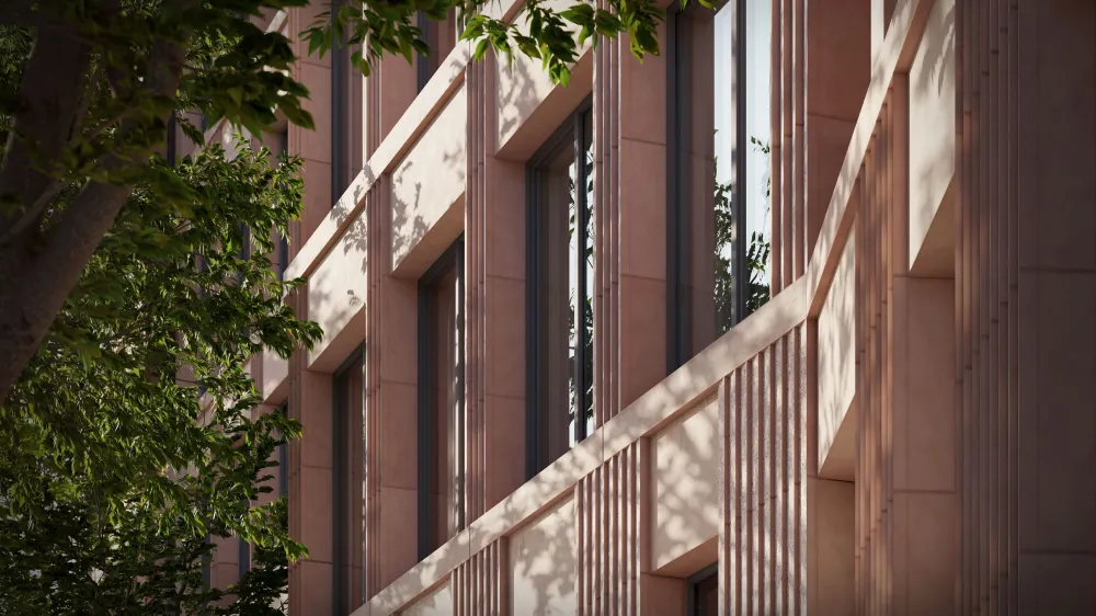 Nestled into a serene tree lined street in Boerum Hill, Brooklyn, Bergen features 105 residences by renowned architect Frida Escobedo. Driven by neighborhood context, the facade takes inspiration from the quintessential bay-window brownstones, interpreting the geometry and materiality in a contemporary... See more
