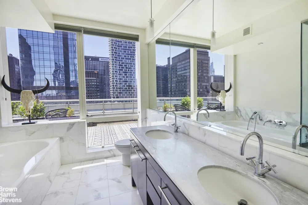 Presenting an unparalleled opportunity within the prestigious Park Imperial, this distinctive two-bedroom, two-bathroom residence spans 1,412 square feet and boasts a remarkable 492-square-foot terrace, creating a perfect space for both entertaining and personal enjoyment. Capturing radiant sunlight from triple exposures facing north, east, and south, this home offers a wonderful sense of airiness, accompanied by cityscape vistas that encompass Central Park and the Hudson River.