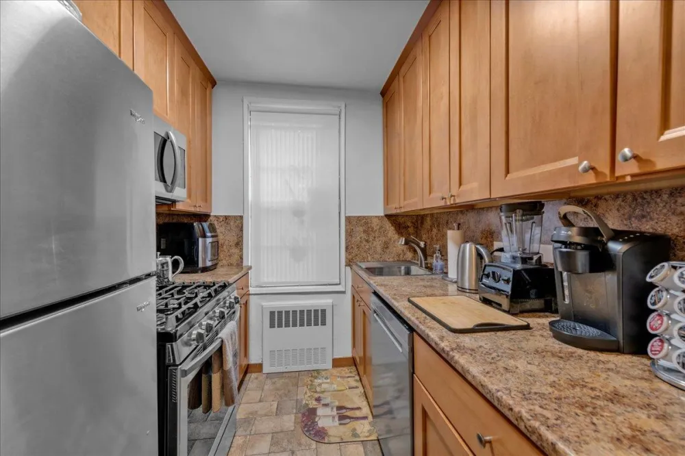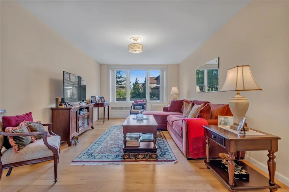 Spacious bright one bedroom conveniently located. Wall of closets in hall and bedroom, plus closet with light in foyer. Recent renovations to windowed bath and windowed eat-in kitchen with stainless steel appliances. New hard wood floors throughout. New Wall and new electrical. Across from Knolls Crescent... See more