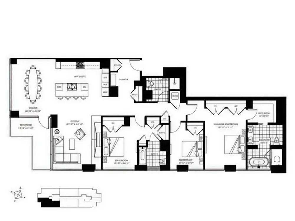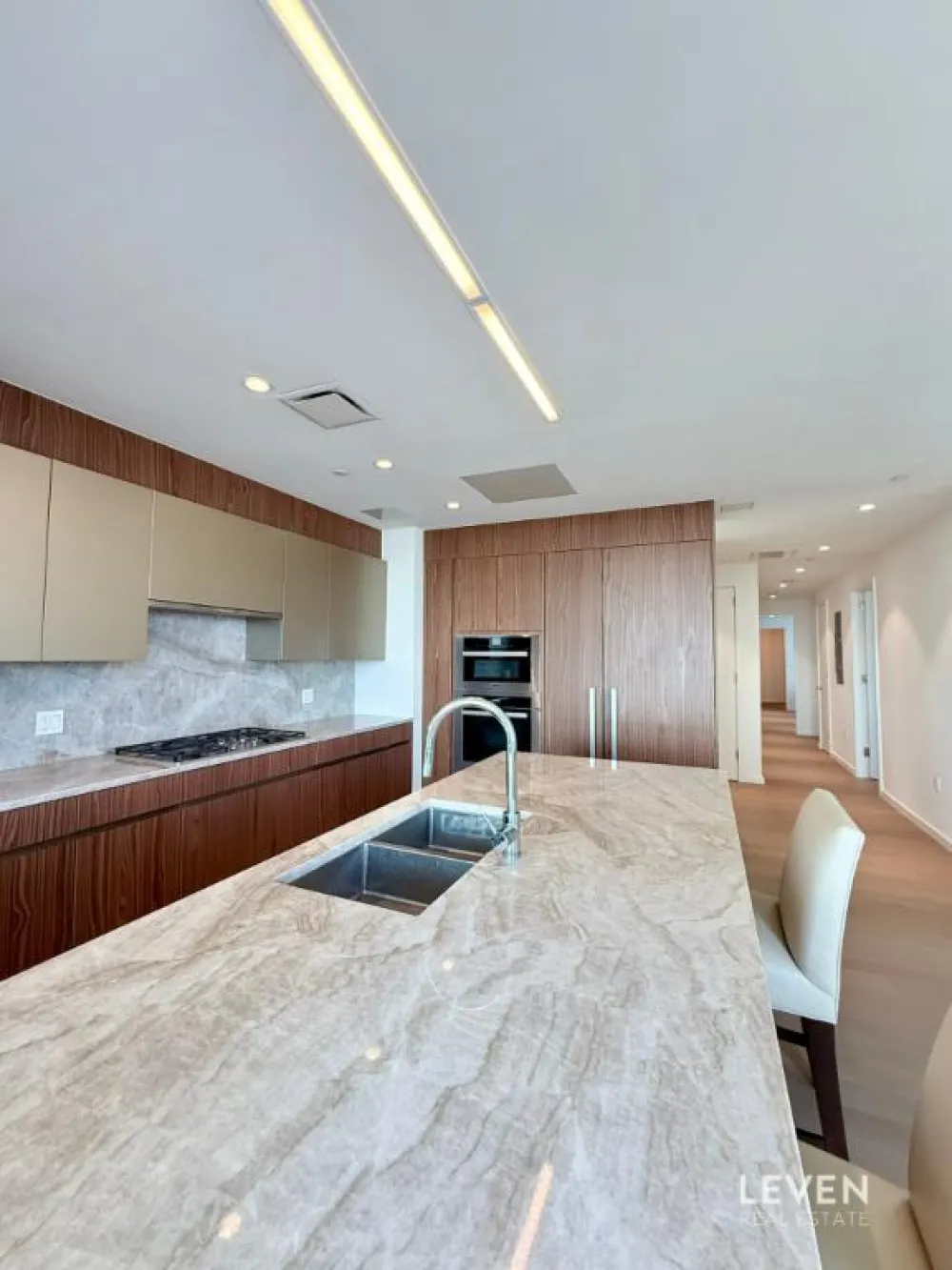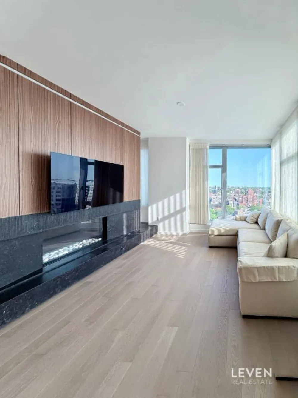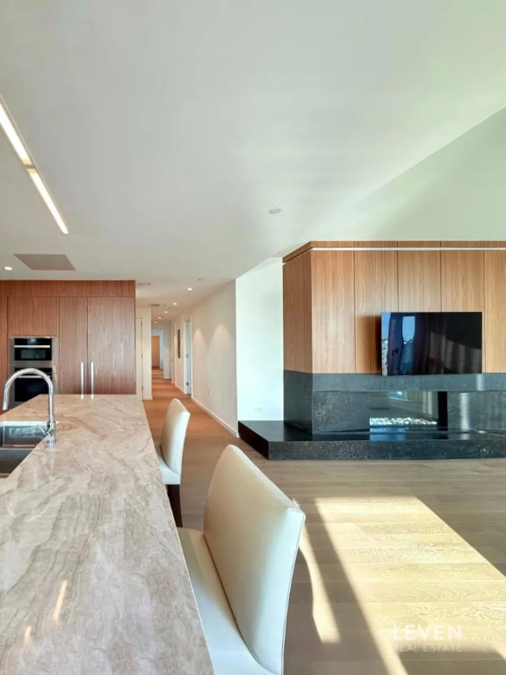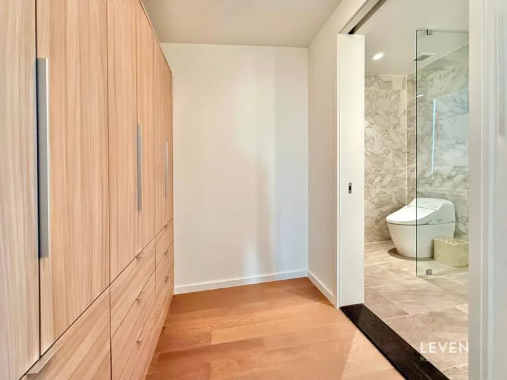 Enjoy remarkable views from atop Tangram House South Unit PH3A is a stunning corner 3 bed, 3 bath featuring 2 full suites, a private balcony offering expansive southern and western open views, high 10-foot ceilings, and luxury finishes throughout. The living room features 5-inch wide French Oak floors, a modern built-in gas fireplace, floor-to-ceiling double-paned windows, and opens to the adjacent chef's kitchen and separate dining room which offers access to the L-shaped private balcony. The gourmet kitchen has an elongated island and is outfitted with custom Italian cabinetry and bright white stone countertops equipped with integrated Miele appliances, including dishwasher and a wine cooler. The primary suite has a fully-outfitted walk-in closet, 2 additional closets, and a luxurious ensuite 5-piece marble bath with a dual-sink vanity, Toto bidet toilet, a deep soaking tub with a separate glass-enclosed shower stall, and radiant floor heating. The second suite has 3 closets as well, with an ensuite marble bath with a tub and an additional linen closet. For added storage there are 3 additional closets throughout the home, and a smart Miele washer & dryer are in unit for your convenience.