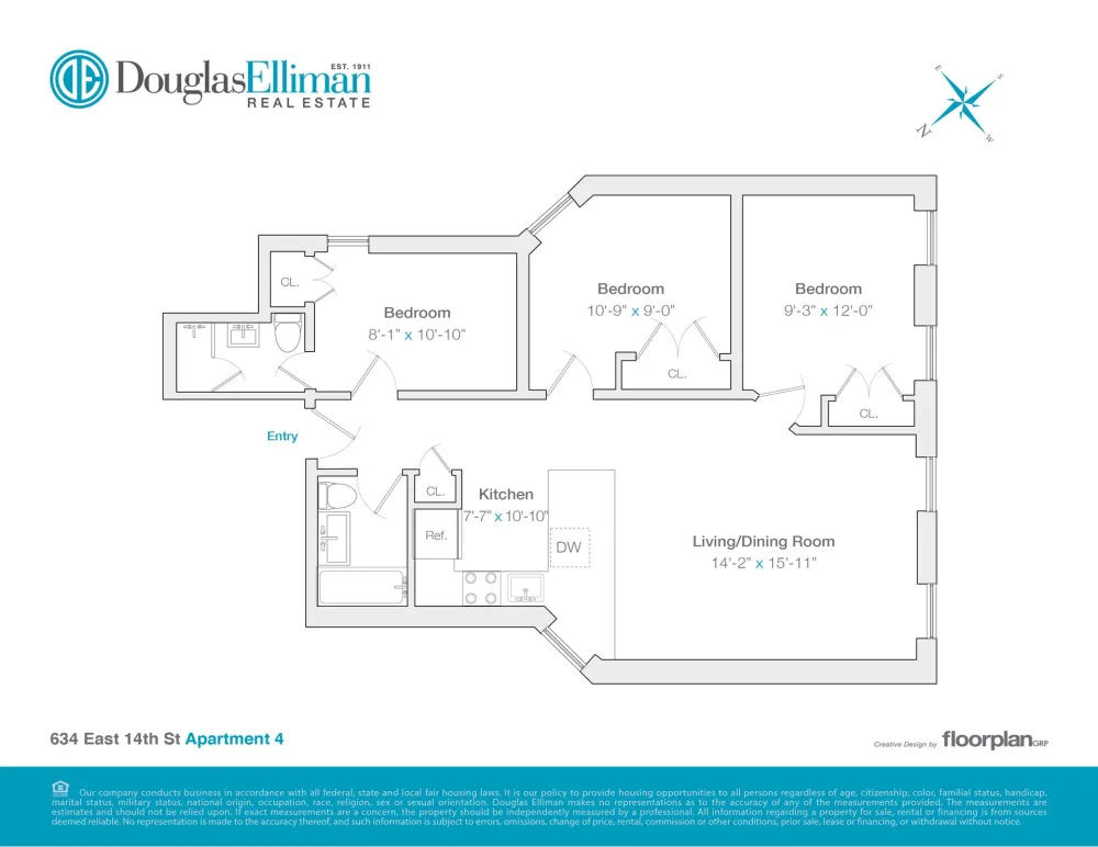 Intelligently configured 3 BdRm 2 full bathroom 1st floor residence. South, East and West exposures. Face into quiet common garden. Washer Dryer Allowed.