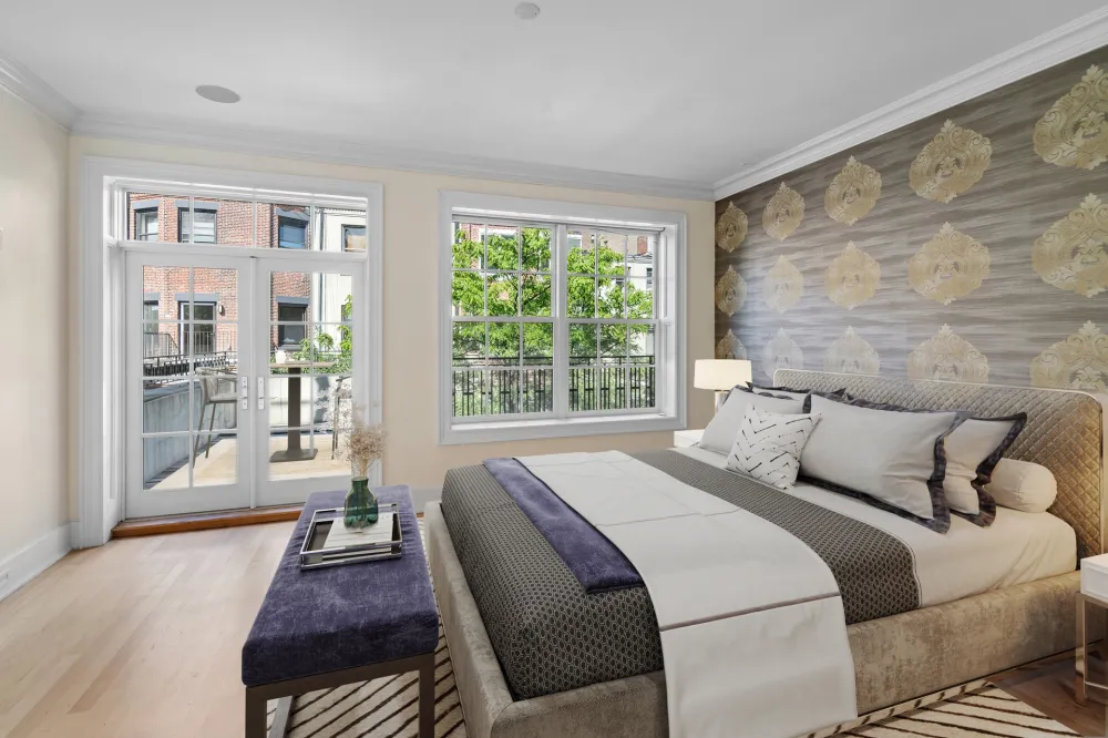 The luxurious primary suite occupies the third floor, complete with a private terrace, an extraordinary marble-clad bathroom with a deep soaking tub, steam shower, and double vanity. This floor also includes an additional bedroom and full bathroom.
