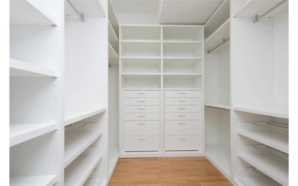 The bedroom wing offers serenity and seclusion. The spacious second and third bedrooms include ample closet space and blackout shades for ultimate comfort. The primary suite is a sanctuary unto itself-featuring a custom-designed Poliform walk-in closet outfitted with drawers, hanging racks, and shoe storage. The windowed, spa-inspired en-suite bath includes a soaking tub, double vanity, and separate rain shower.