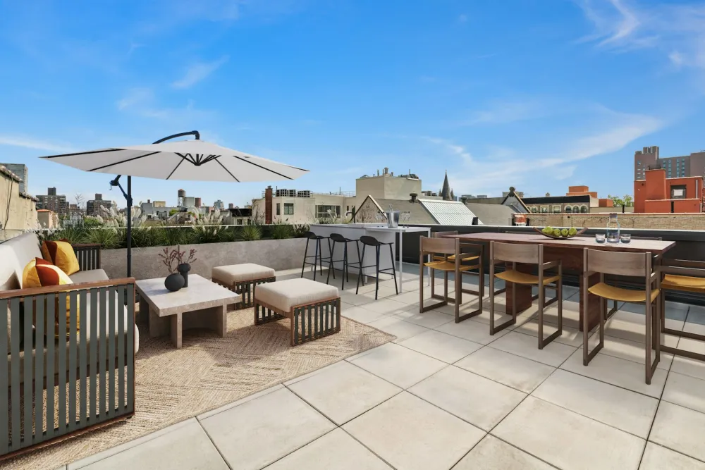 Experience sustainable luxury in this three bedroom, two bathroom Penthouse with a jaw dropping private roof top at The Dovecote, where design, functionality, and Passive House converge seamlessly. Accessed through a private keyed elevator vestibule, the home features premium interior finishes, sound-attenuating oversized windows for natural light, timeless white oak flooring, and an efficient VRF HVAC system. The highlight of this fabulous home is the show stopping, private full roof top terrace. At nearly 1,300 square feet this space offers infinite options to relax, entertain, dine al fresco or even set up a roof garden. As a bonus there is also a zen - like balcony off of the primary suite. The heart of the home includes a cook's kitchen with Caesarstone countertops, Porcelanosa backsplash, custom lacquered cabinetry, and a prominent Bosch stainless steel appliance suite. The recirculating hot water system adds efficiency and reduces waste. The primary bath is a clean design sanctuary with Persian white Porcelanosa floor tiles, Carrera Blanco wall tiles, a custom lacquered vanity with a Caesarstone countertop, and a walk-in shower with Grohe fixtures. The secondary bath combines Travertine-look porcelain floor tile, Italian glazed white porcelain wall tile, and a spacious soaking tub with polished chrome Kohler fixtures. Indulge in unparalleled sustainable living at The Dovecote with this jewel of a penthouse.
