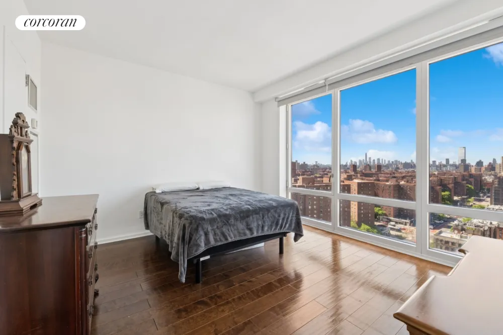 This stunning two-bedroom, two-bathroom penthouse offers refined luxury and exceptional light with its southern exposure, soaring ceilings, and floor-to-ceiling windows. Rich dark fumed oak floors run throughout, complementing the home's sleek, modern design. Two private balconies provide seamless indoor-outdoor living and rare open-air moments in the heart of Gramercy.