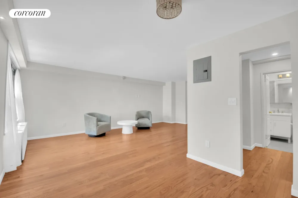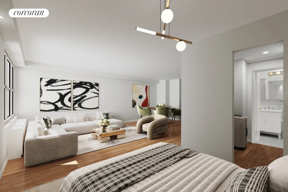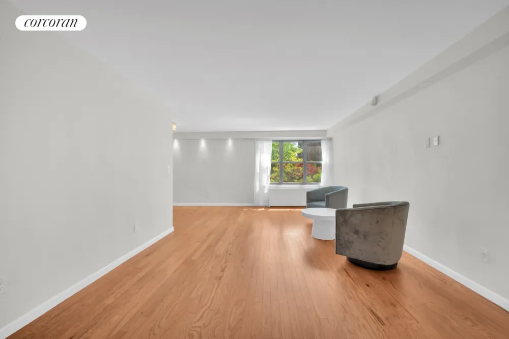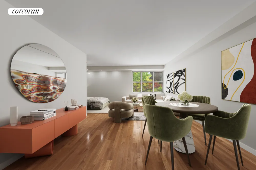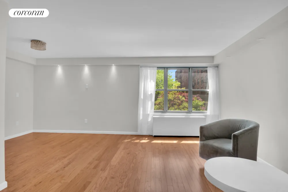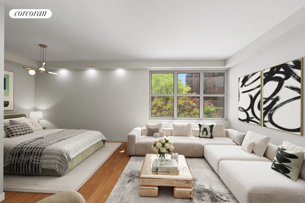 This bright, east-facing alcove studio is nestled in one of Gramercy's most prestigious full-service co-ops, offering a rare blend of tranquility, luxury, and unbeatable location. Oversized windows frame serene garden views and flood the space with natural light, highlighting the warmth of the hardwood floors and the thoughtful, flexible layout that easily accommodates a variety of living arrangements.