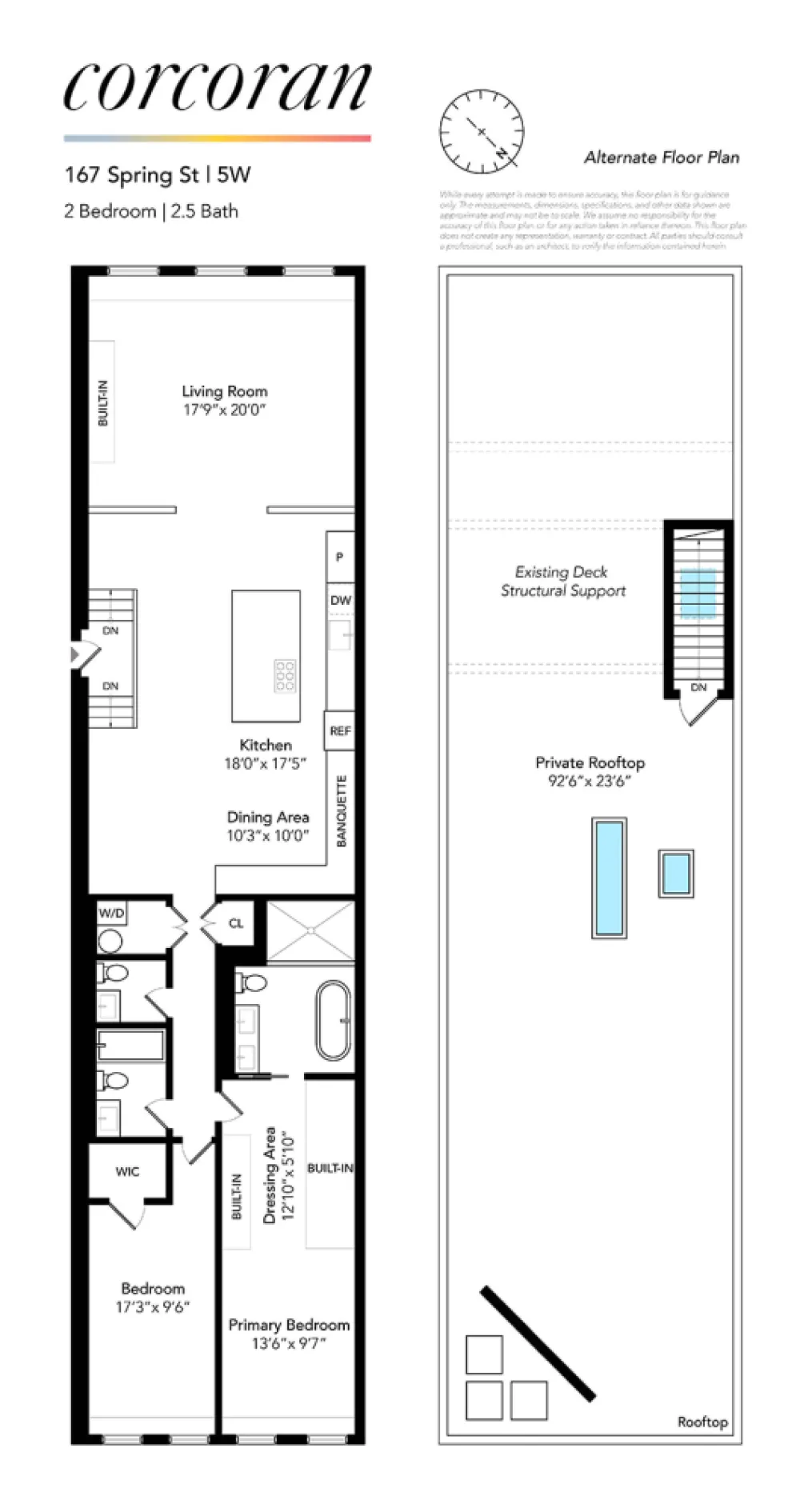 5W at 165 Spring Street presents a remarkable opportunity to reimagine a top-floor SoHo loft, complete with an extraordinary 2,175-square-foot private roof deck offering sweeping views of downtown Manhattan.