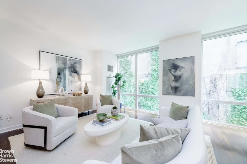 Uncover your own hidden oasis nestled in one of Manhattan's most coveted enclaves. This turnkey, two-bedroom, two-bathroom home offers privacy, space, and comfort. Just bring your own toothbrush! The first thing you'll notice is the dramatic, floor-to-ceiling, south-facing wall of windows, offering... See more