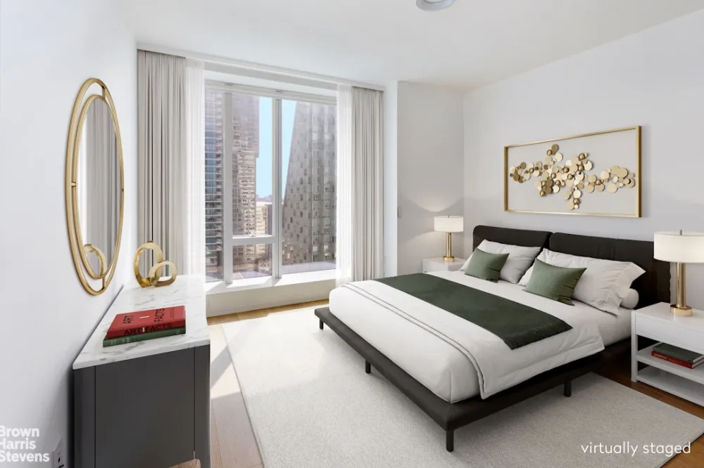 A beautiful two bedroom, two and a half bathrooms, with an impressive 1,375 Square feet of living space awaits you. Located on the 18th Floor with full southern exposure throughout, city and Hudson River views. Floor to ceiling windows, capture wonderful natural light. Walnut wide plank floors throughout, along with the finest level of custom finishes.