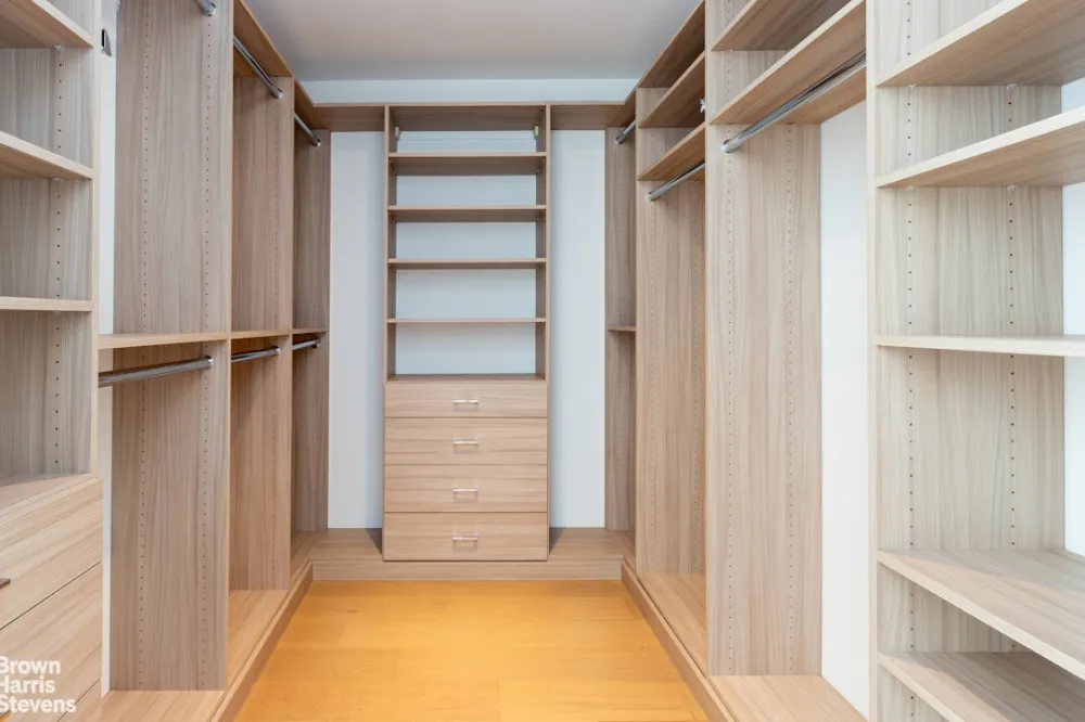In addition, the primary bedroom has a large walk-in closet designed by California Closets.