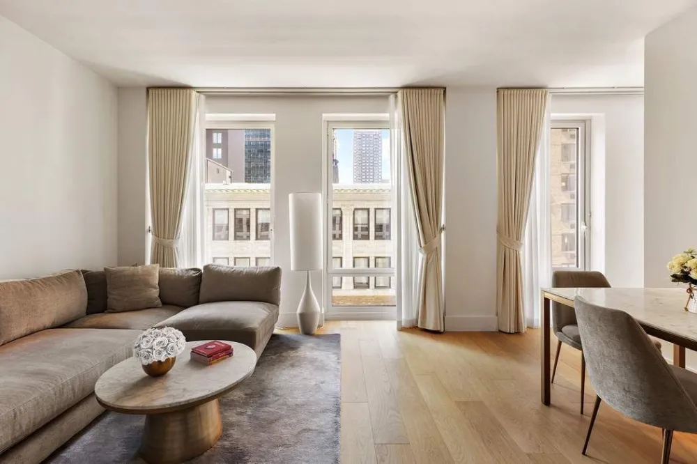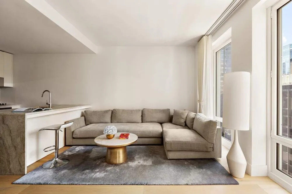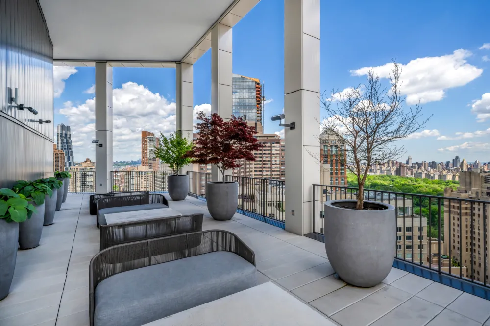 Apartment 12G is a luminous, south facing one bedroom apartment, a light filled aerie with floor to ceiling windows, wide plank white oak floors and an open layout designed to maximize the natural light. The interiors are elegantly appointed and include a great room open to a sleek quartzite kitchen with breakfast bar, a long hallway with floor to ceiling windows leading to a south facing bedroom with abundant closets. The large bath is clad in Gioia Venatino marble and has a soaking tub with shower. A washer and vented dryer provide in-home convenience, completing a residence where every detail has been carefully considered. Located just moments from Central Park, Lincoln Center, Columbus Circle and Broadway, this prime address is in one of Manhattan’s most storied and dynamic cultural neighborhoods. Lincoln Center, one of the world’s greatest cultural epicenters, is a few moments away, and encompasses the Metropolitan Opera, the New York Philharmonic, the New York City Ballet, the Vivian Beaumont Theatre, Alice Tully Hall, Film at Lincoln Center and the Juilliard School, each offering world class performances and artistic experiences throughout the year. Situated at the Park Loggia, a striking architectural achievement by Skidmore, Owings & Merrill, the apartment partakes of its gracious porte cochere arrival evoking a sense of refined elegance while the beautifully proportioned loggias provide depth, rhythm and architectural beauty. Residents enjoy access to 20,000 sq. ft. of extraordinary amenities curated by the acclaimed AD 100 design firm Pembrooke & Ives, including a beautifully landscaped 7,000 sq. ft. roof terrace with sweeping city views, a state-of-the art fitness center, indoor and outdoor lounges, private dining rooms, a media lounge, game rooms, children’s playroom, and beautiful outdoor gardens. Pets allowed. Financing: 90% allowed.
