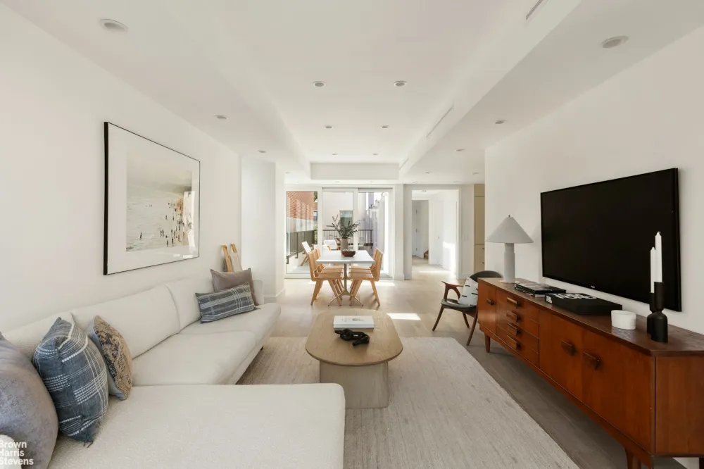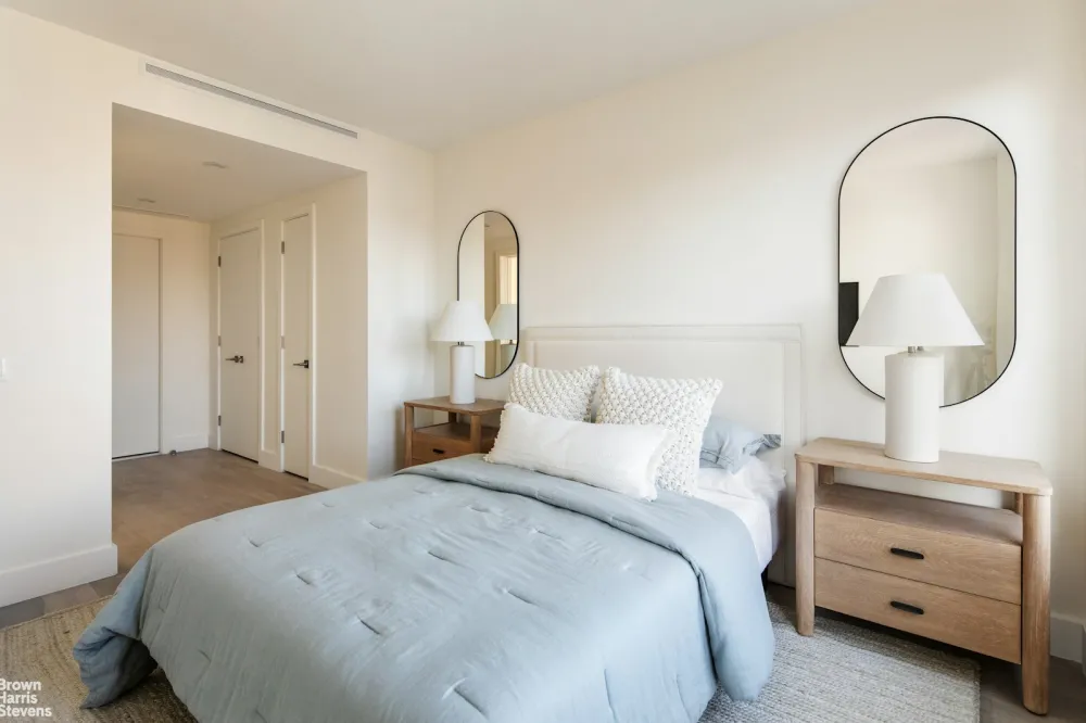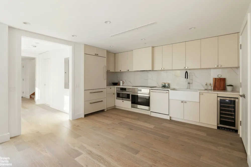 4B epitomizes luxury living, boasting European white oak engineered wood floors and surface mount bedroom light fixtures that accentuate the modern ambiance. On the main floor, the gourmet kitchen is a culinary enthusiast's dream, featuring white quartz countertops, painted wood shaker cabinetry, and panel-ready appliances seamlessly integrated for a sleek aesthetic. Enhancing the culinary experience, a ceramic farmhouse sink and under counter wine cooler cater to the most discerning tastes, while top-of-the-line appliances including a Liebherr 36" refrigerator and freezer, Bertazzoni induction range, and Bosch fully-integrated dishwasher elevate every meal preparation. The expansive living/dining space provides the perfect backdrop for entertaining guests or simply unwinding in style while an adjacent bedroom can function as an extension of your living space. Both the bedroom and living room open up to a huge private terrace that expands the possibilities of indoor/outdoor living.