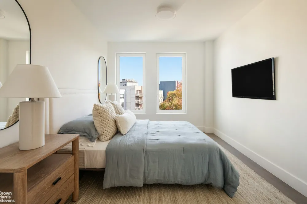 The striking facade of German-engineered textured thin brick captivates the eye at the corner of Prospect Place and Underhill Avenue, setting the tone for the refined aesthetic that awaits within. Step into the contemporary lobby and common spaces, adorned with porcelain floor tiles and bathed in natural light streaming through oversized European-style windows. A package room with a refrigerator ensures seamless deliveries.