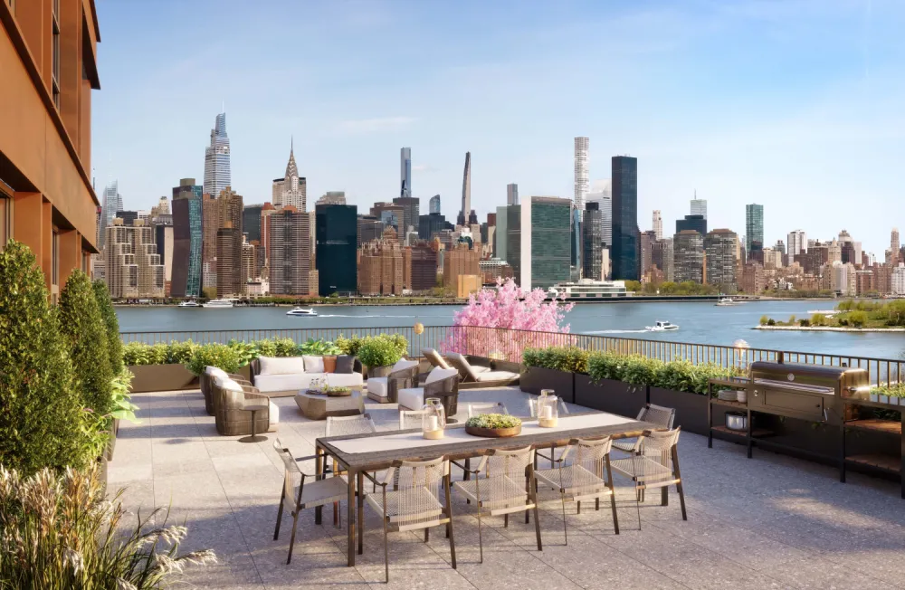 Residents at The Huron enjoy over 30,000 square feet of curated amenities and direct access to the maturing Brooklyn waterfront. Active spaces include a 50-foot indoor saltwater pool overlooking the river, a state-of-the-art fitness center with Peloton bikes, a movement/dance studio with mirrors and ballet bars and separate locker rooms with a sauna. There is a stunning resident's lounge with pool table, a formal dining room, a co-working area with pods, booths, and conference space, a game room, and a children's playroom. Outdoor spaces include a manicured waterfront promenade, an 8,000 square foot private park with recreation areas designed for kids, and two sprawling rooftops with awe-inspiring views of the iconic Manhattan skyline. Additional services include 24-hour concierge, private storage, on-site attended parking, a pet spa, a bicycle room, and a package room with cold storage.