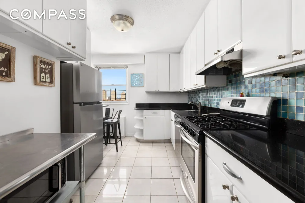 The windowed, eat-in kitchen is a chef's delight, complete with stainless steel appliances, granite counters and loads of cabinets for modern convenience. Enjoy your morning coffee in this delightful space, or take it outside to your private balcony, where you can savor the fresh air and enjoy a tranquil escape from the bustling city below.
