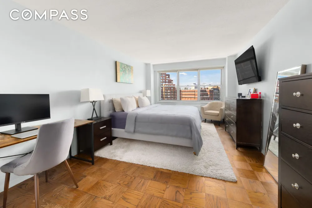Step inside this high floor, spacious and very bright 2-BEDROOM, 1-BATH unit, where you'll be greeted by an abundance of natural light streaming through oversized windows. With a total of four rooms, the layout caters to both relaxation and entertainment, providing a versatile space for all your lifestyle needs. The primary bedroom is large and allows ample space for a king sized bed, a sitting area and a home office, if needed. The second bedroom features a double exposure and has great natural sunlight and city views.