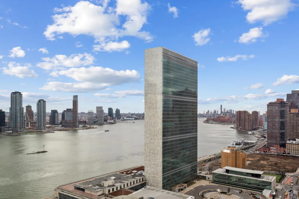 Recently repriced, this sophisticated and sun-drenched, corner three-bedroom, three bathroom luxury condominium residence designed by architect Sir Norman Foster, provides panoramic sweeping views of the East River, The United Nations, Empire State and Chrysler buildings. It spans approximately 2609 square feet and has 11" ceilings.