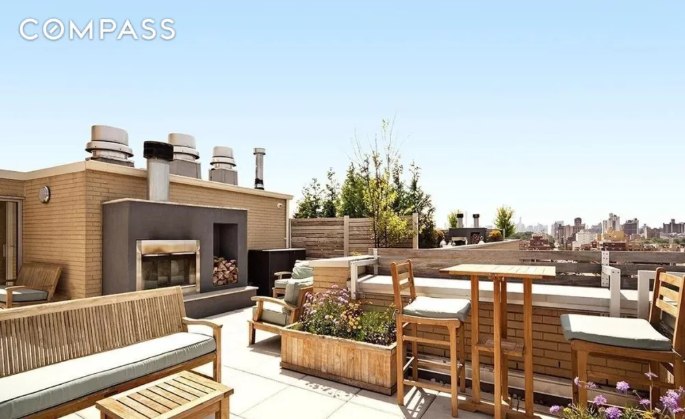 The full-service building offers a live-in superintendent, on-site parking (available for rent), a beautifully landscaped roof terrace with a fireplace, a second-floor garden terrace with cabanas, and a package room.