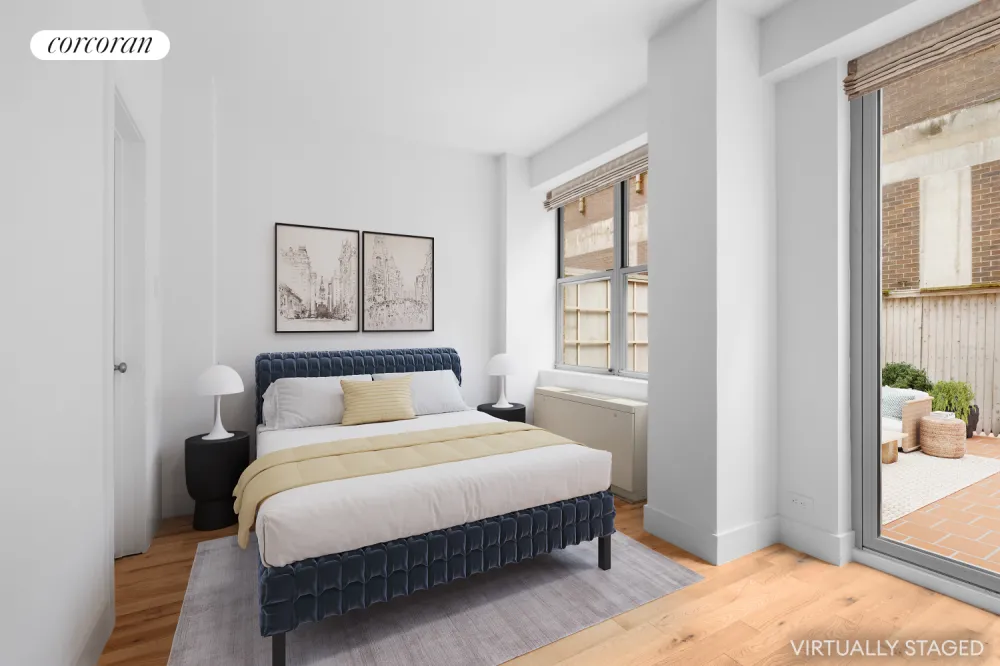 With a massive 350 SF private garden patio, Apartment 1A has been fully gut renovated - new kitchen, bathroom, hardwood floors, millwork, windows, wiring, plumbing, lighting, and HVAC. No detail was overlooked.