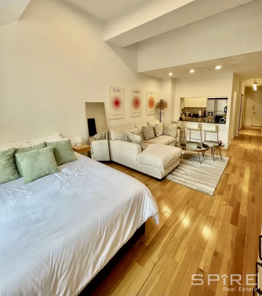 Beautifull Luxury Loft overlooking the buildings zen garden. Super Quiet . Great Closet Space, Oversized Chefs Pass through kitchen ( great for entertaining ) , with a large caesar stone countertops, high end appliances and lots of sleek white cabinetry, extra high 12ft High vaulted ceilings and solid white oak flooring throughout the apartment. An updated bathroom with dark slate flooring and new closet doors.