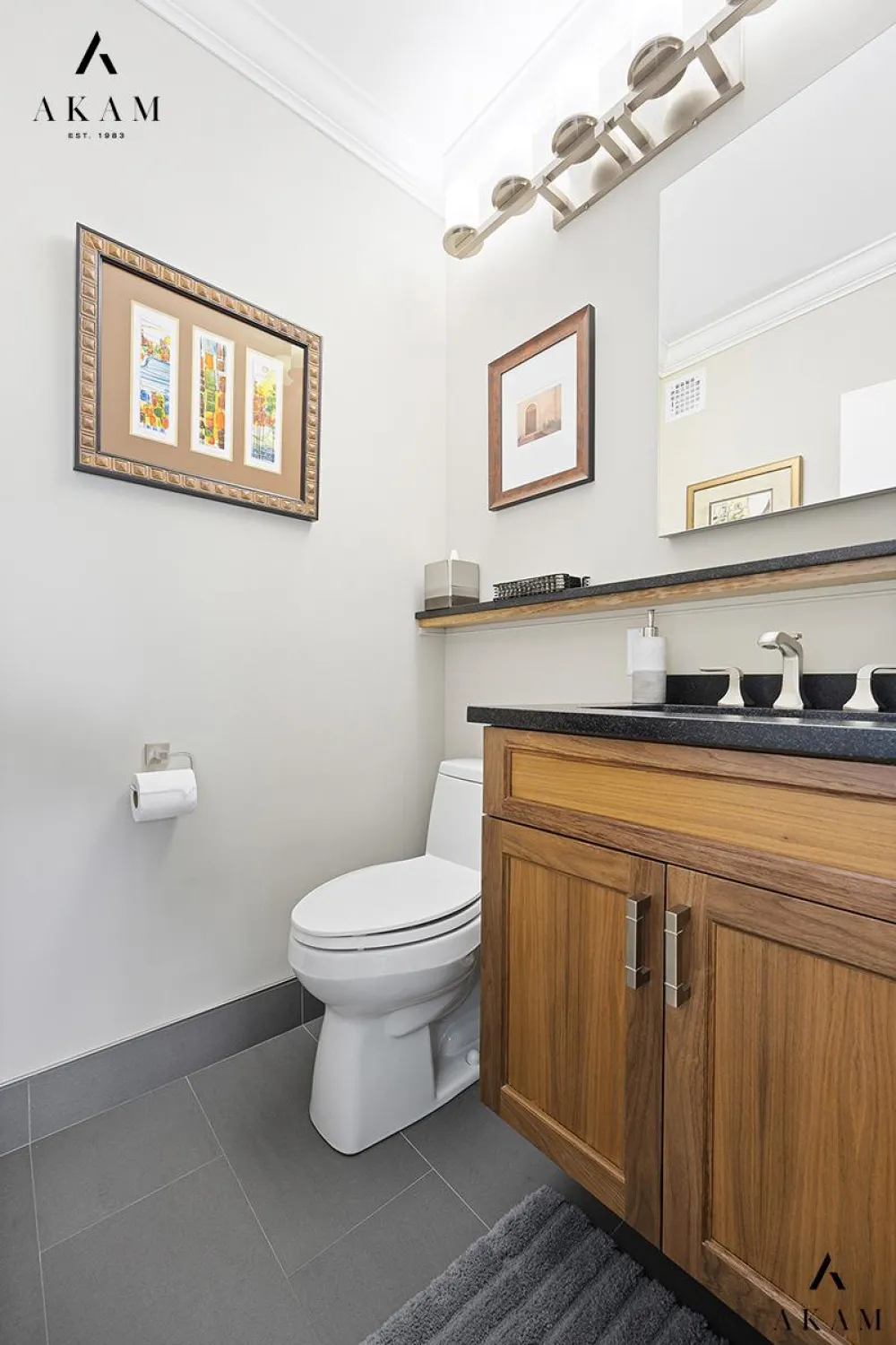 • Chef's Kitchen: Outfitted with top-tier appliances, Fisher & Paykel refrigerator, granite countertops, and custom cabinets with a built-in pantry and pull-out spice rack