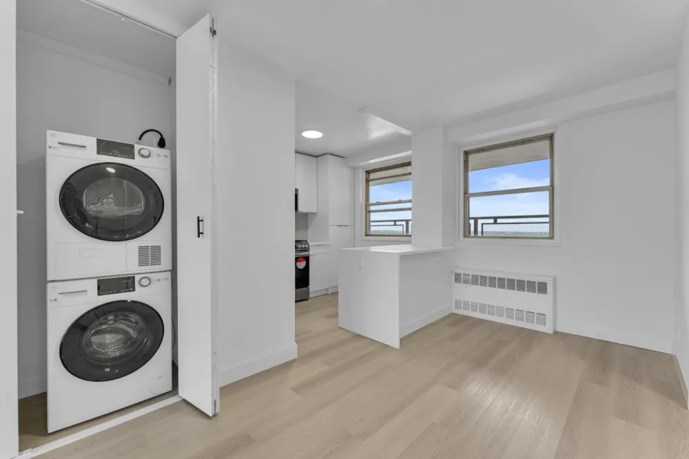 In-Unit Washer & Dryer: Enjoy the convenience of a full-size washer and dryer tucked neatly into a hallway closet, a rare find in city apartments.