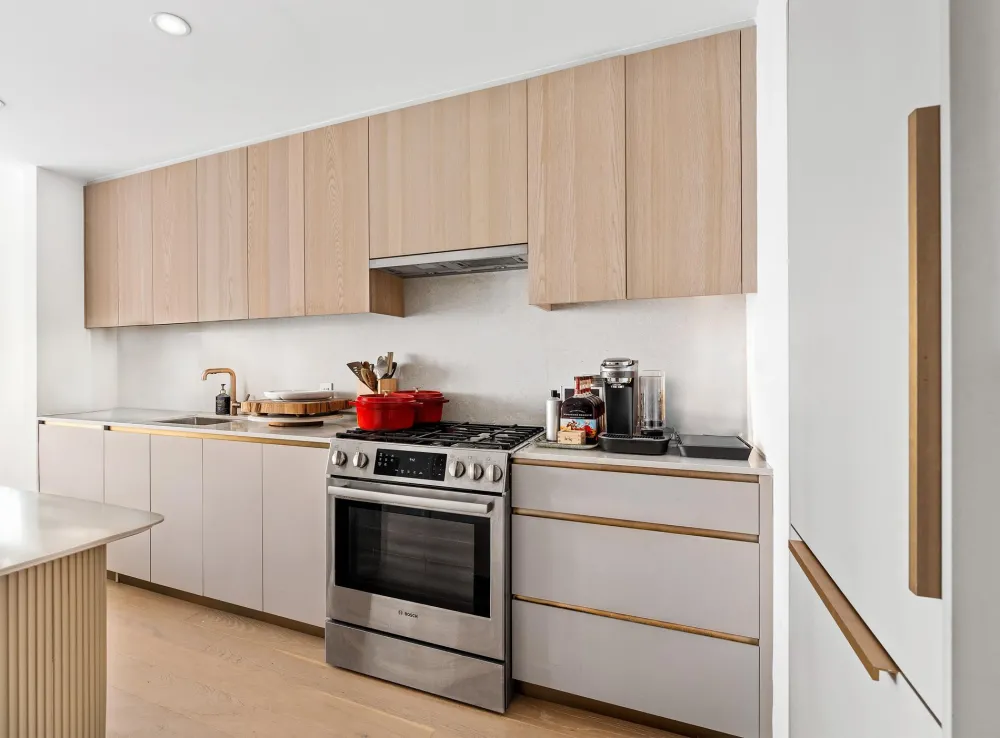 The high floor northeast-facing one bedroom is a generously-sized residence highlighted by abundant natural light that pours in through the large curtain wall-style windows. Youll be thrilled with the distinctive European white oak engineered wood flooring throughout, the abundant closet space both the coat closet and bedroom closet are walk-in sized and the contemporary galley kitchen, suited for both everyday living and new culinary experiences. The kitchen is composed with cabinetry finished with sand ash veneer and extreme matte laminate, a Viatra quartz slab countertop and backsplash, top-of-the-line Bosch appliance package that includes an outside venting range hood, and Monogram microwave.