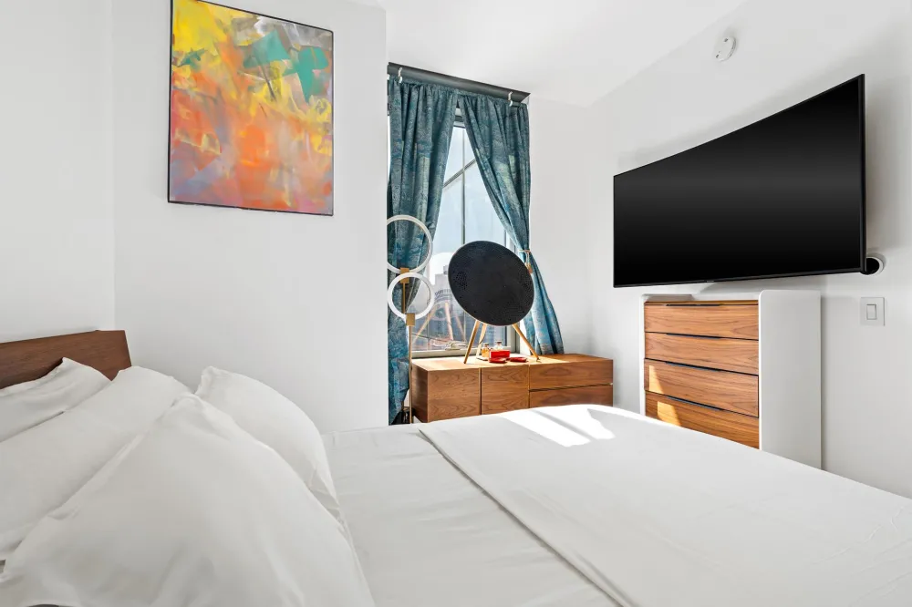 Perched on the 40th floor, this residence offers stunning views of the Upper East Side, Court Square, Astoria, the iconic skyline, and expansive water views of the East River and Long Island Sound.