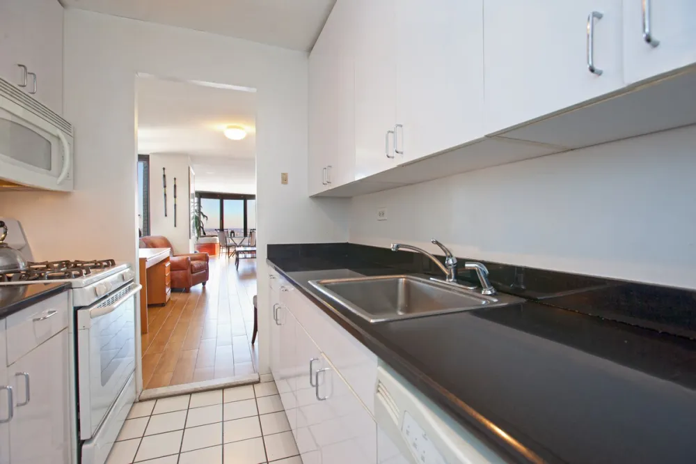 Experience both the sunrise and the sunset over the New York City skyline from the 56th floor of this spectacular 3 bedroom, 2 bath home. This unique home offers East, West, and North views from the bay windows. Unique loft like floor plan with over 1400 square feet of living space. The private balcony off the bedroom, numerous closets, including a huge walk-in, and a new W/D are an added bonus. Don't miss your opportunity to see this rarely available Corinthian apartment.RE Taxes for primary residence $1875.